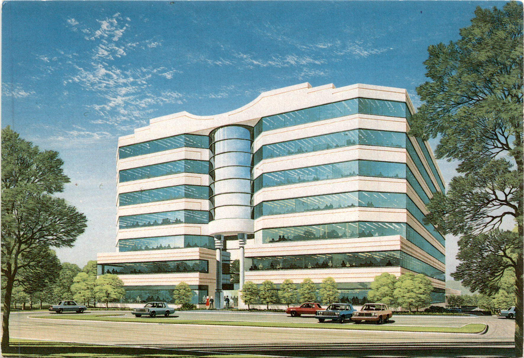 The postcard advertises office space at 8521 Leesburg Pike, conveniently located on Route 7 between Tysons Corner and the Dulles Toll Road. The building offers 147,000 sq. ft. of office space with occupancy available in Fall 1984. For more information, interested parties can contact Coldwell Banker at 703/734-4708.