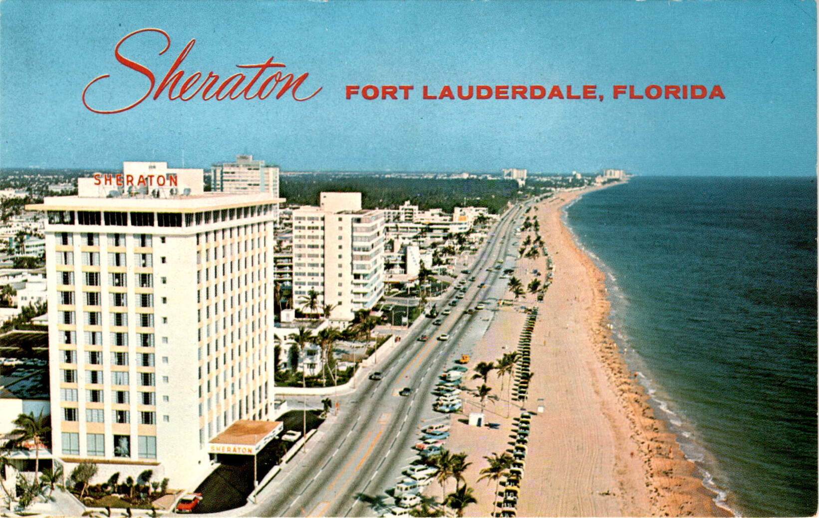 The postcard is advertising the Sheraton-Fort Lauderdale Hotel in Fort Lauderdale, Florida. It describes the hotel as the Gold Coast’s finest resort with complete vacation and convention facilities.