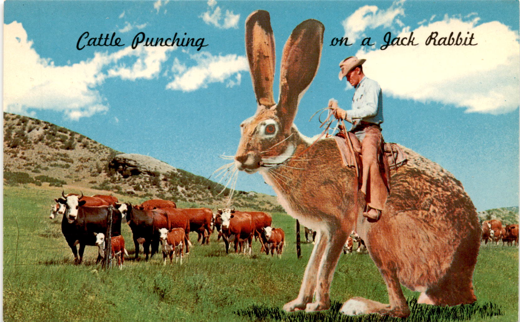 Cattle punching is a time-honored tradition in the American West, where cowboys round up and drive cattle to market or grazing areas. While some cowboys use their trusty broncs for this task, others opt for a more unconventional method – the Jack Rabbit. This unique postcard from 1962 showcases a cowboy on horseback chasing after a herd of cattle with a Jack Rabbit by his side, highlighting the diversity of tools and techniques used in cattle punching.The image on the postcard captures the essence of the Wild West, with the cowboy and his Jack Rabbit working together to herd the cattle. This scene is a reminder of the rugged and challenging lifestyle of cowboys in the West, where they rely on their skills and instincts to handle large herds of livestock. The use of a Jack Rabbit in cattle punching may seem unusual to some, but for this cowboy, it is a trusted companion in getting the job done.As we look back on this vintage postcard, we are reminded of the rich history and heritage of cattle punching in the American West. The image serves as a testament to the resilience and resourcefulness of cowboys, who have always found innovative ways to tackle the challenges of working with livestock. Whether on horseback or with a Jack Rabbit by their side, cowboys continue to uphold the traditions of cattle punching, keeping alive a piece of Western history for future generations to appreciate.