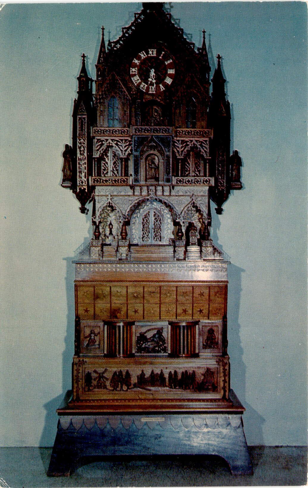 The Apostles’ Parade Clock, a stunning piece of art representing a Cathedral, was created by the Bily Brothers of Spillville, Iowa in the early 1920s. Made of walnut, maple, and rosewood, this intricate clock features twelve Apostles that parade to a set of chimes. The craftsmanship and attention to detail in this clock are truly remarkable.