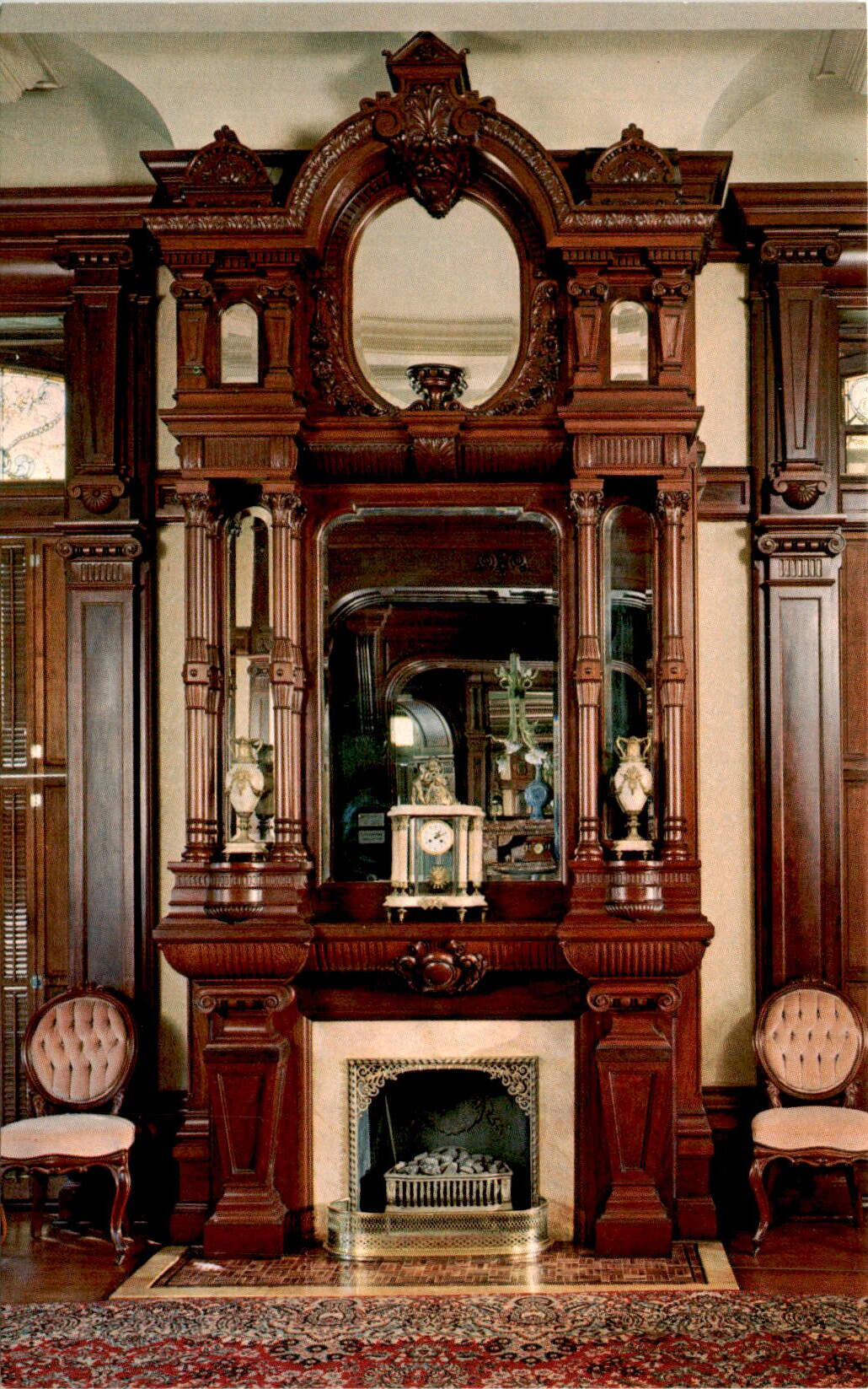 The Bishop’s Palace in Galveston, Texas is a stunning example of Victorian architecture, open for public tours. One of the most impressive features of the palace is the elaborately carved mantel of Santo Domingo mahogany, which was awarded first prize at the Philadelphia World’s Fair of 1883. This mantel is just one of fourteen fireplaces found throughout the home, each showcasing intricate craftsmanship and attention to detail.