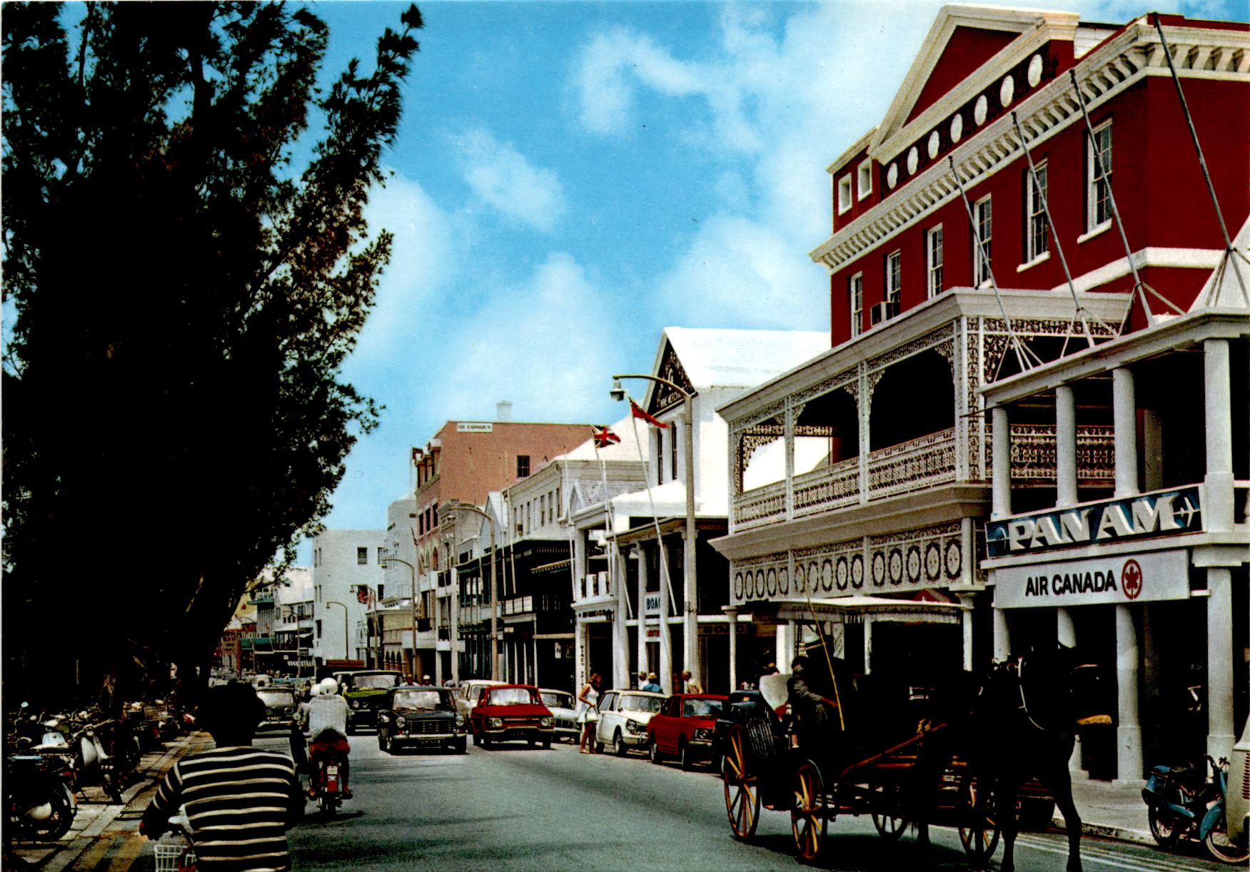 Bermuda is a picturesque island known for its pink sand beaches, crystal clear waters, and friendly locals. The postcard captures a glimpse of the island’s beauty, inviting viewers to imagine themselves strolling down Front Street and exploring the shops and attractions that line the bustling street. The postcard serves as a reminder of the unique charm and allure of Bermuda.