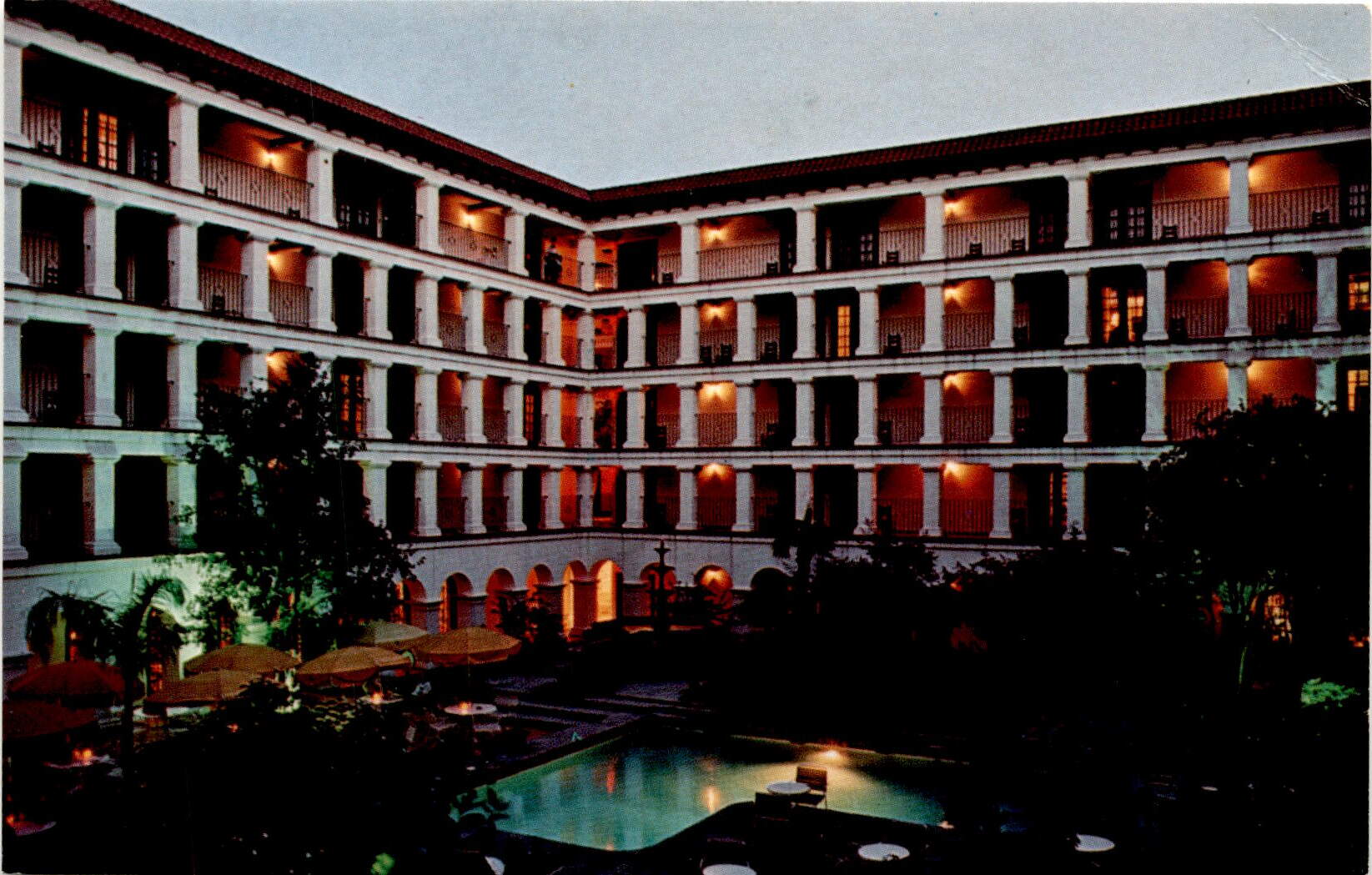Back of PostcardEscape to the quiet tranquility of Colonial Spain at La Mansión del Norte in San Antonio, Texas. This magnificent Spanish courtyard hotel is located on the bustling Northside, offering a peaceful oasis with tropical foliage and a swimming pool. Guests can enjoy fine dining at the San Angel Restaurant and take advantage of the complimentary courtesy car for easy access to the airport. Plus, shopping malls are within walking distance for added convenience.