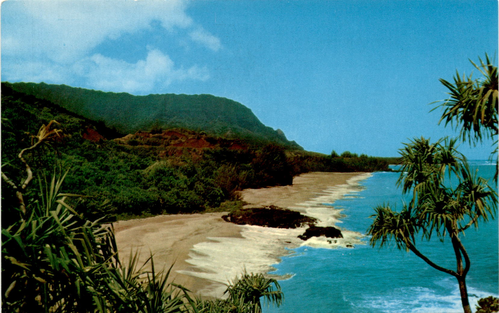 Lumahai Beach in Kauai is a stunning paradise with its blue waters, white surf, and pristine white sand. It is considered one of the most beautiful beaches on the Garden Island, and it’s easy to see why. The postcard captures the beauty of this Hawaiian gem, making it a must-visit destination for anyone looking for a tropical escape.