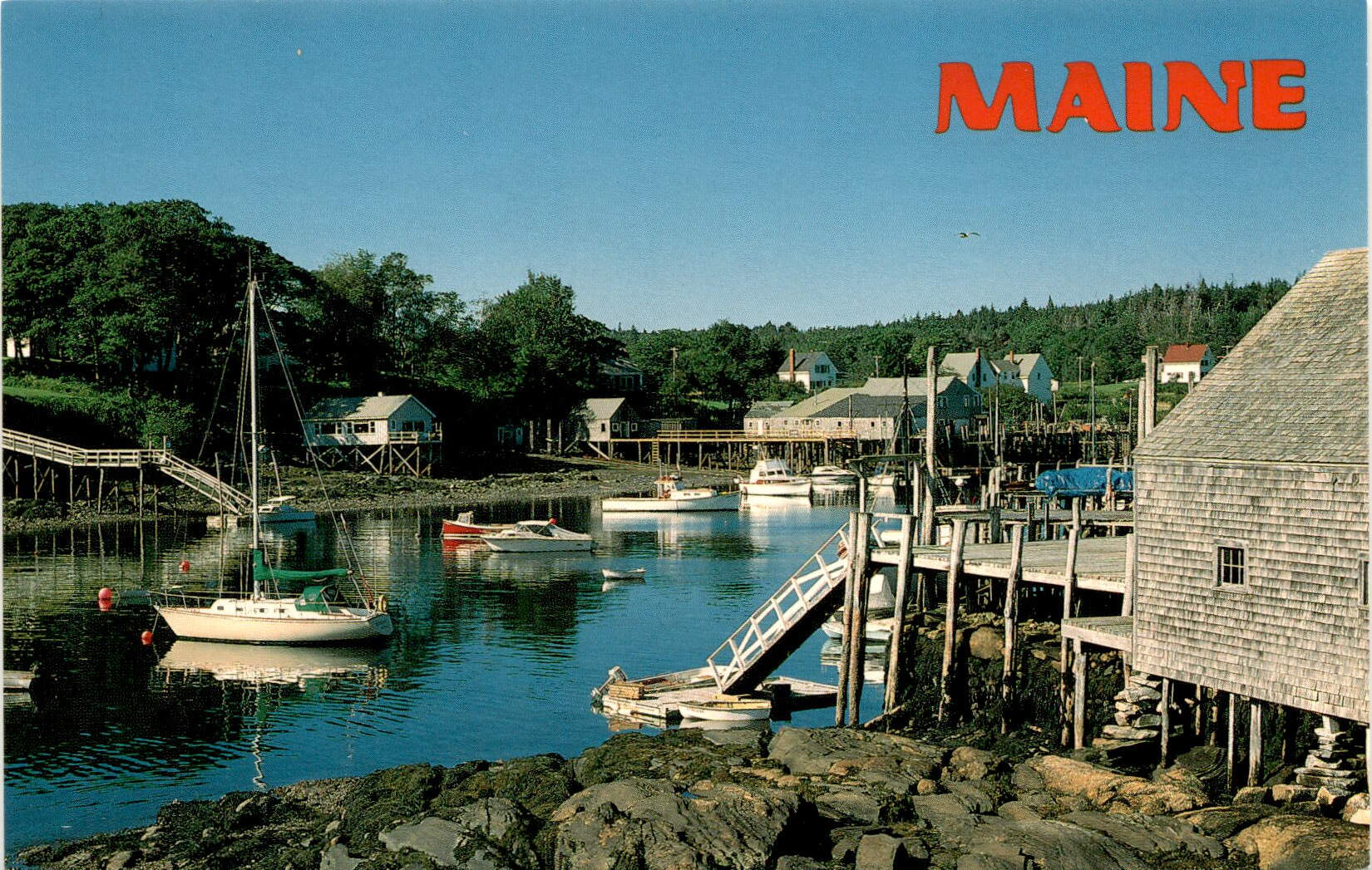 Maine New Harbor Harbor scene Serene Calm Peaceful Postcard