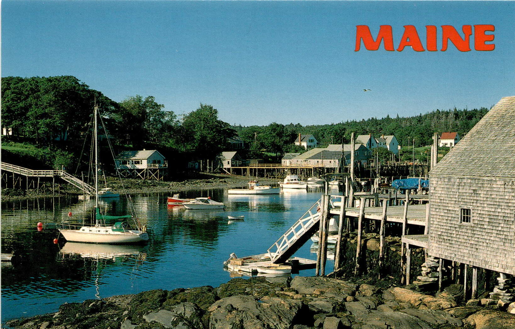 Overall, this postcard serves as a reminder of the tranquility and natural beauty that can be found in Maine’s coastal areas. The image of the quiet harbor is a peaceful escape, inviting viewers to imagine themselves in the serene setting. The promotion of the Heritage collection adds to the postcard’s appeal, offering a glimpse into the rich history and beauty of New England.