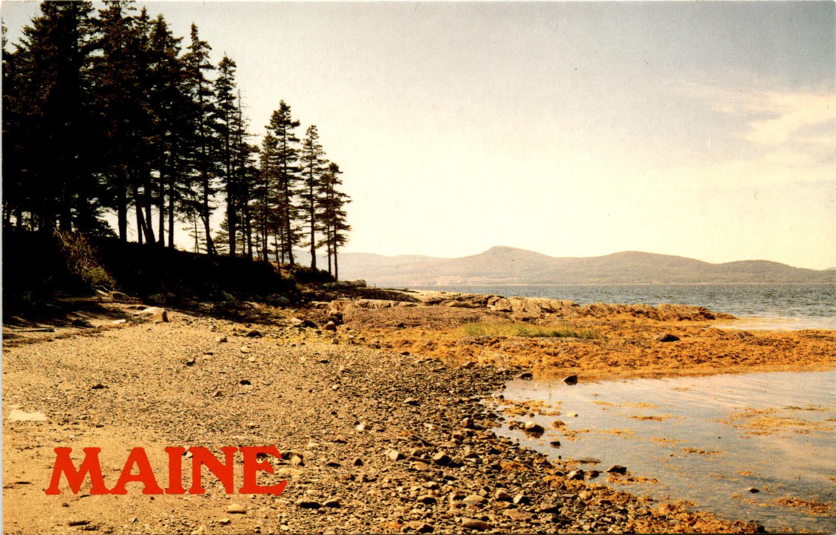 The front of this postcard showcases a stunning image of a rocky beach in Maine, captured in vibrant color by R.S. Lenfest. The text on the back of the postcard highlights the unique landscape of Maine’s coastline, noting that sandy beaches are rare in the area. Instead, the northern coastline is characterized by rocky ledges and occasional pebbled beaches, creating a rugged and picturesque shoreline.