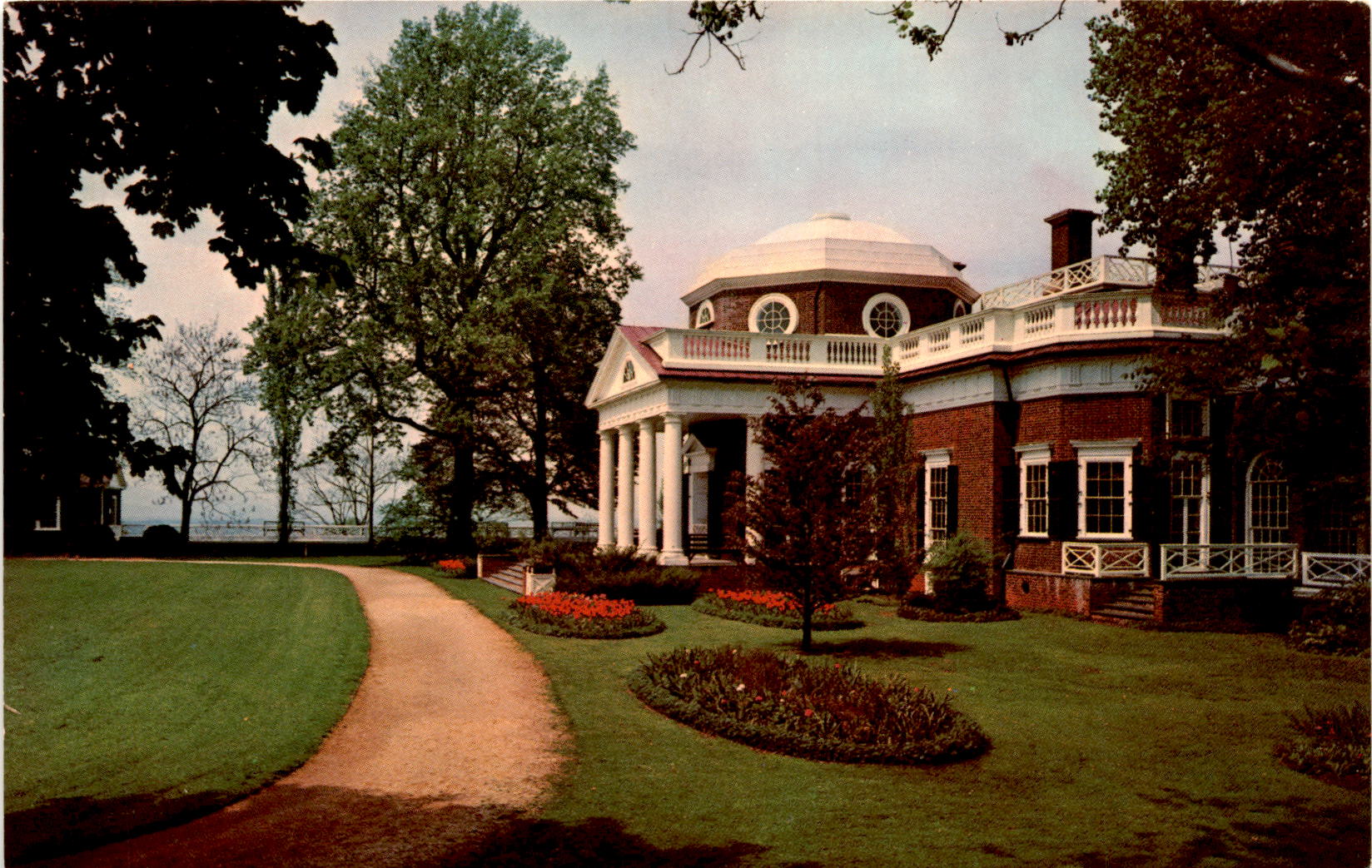 Monticello, the historic home of Thomas Jefferson, is located in Charlottesville, Virginia. The West Front of the estate is a stunning example of Jeffersonian architecture, showcasing the beauty and grandeur of the property. This postcard, published for the Thomas Jefferson Memorial Foundation, Inc., captures the essence of Monticello and its significance in American history.
