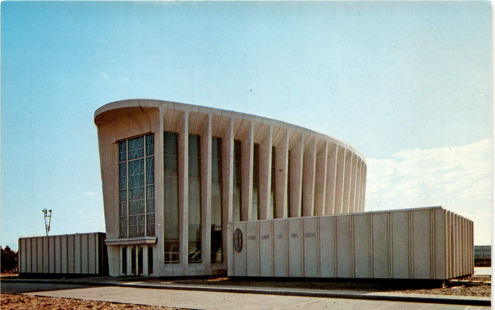 The front of the postcard features a color photograph of Our Lady of the Skies Chapel at John F. Kennedy International Airport in Jamaica, New York. The image was captured by Colorcraft Studios in 1967 and showcases the beautiful architecture of the chapel. The postcard also includes the copyright information for Colorcraft Studios.