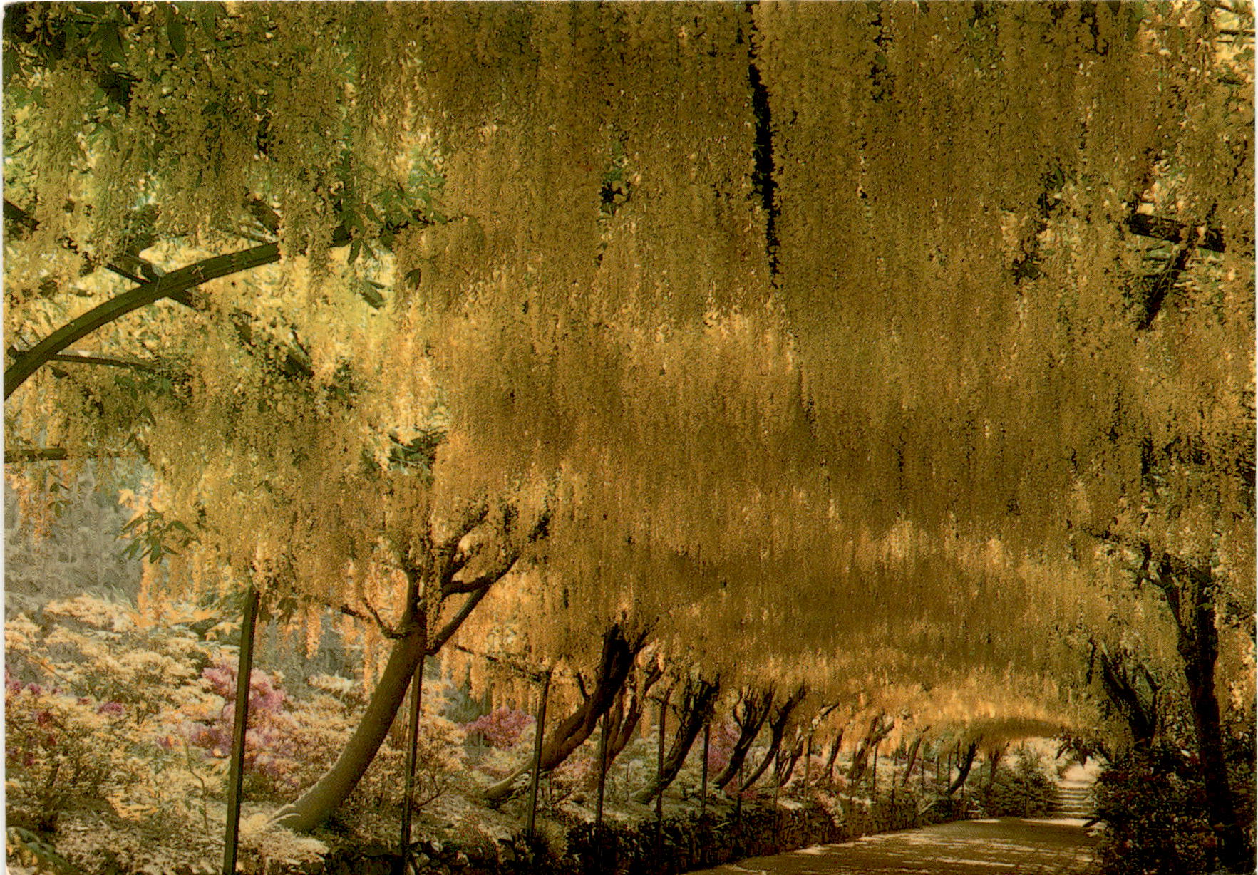 Louise expresses her love for London and the Laburnum Arch at Bodnant Garden, showcasing her appreciation for the natural beauty of the area. She mentions that she is staying in the highlands of Inver and invites Lorinne to join her in exploring the stunning landscapes. The postcard is a reminder of the tranquility and serenity that can be found in nature, away from the hustle and bustle of city life.