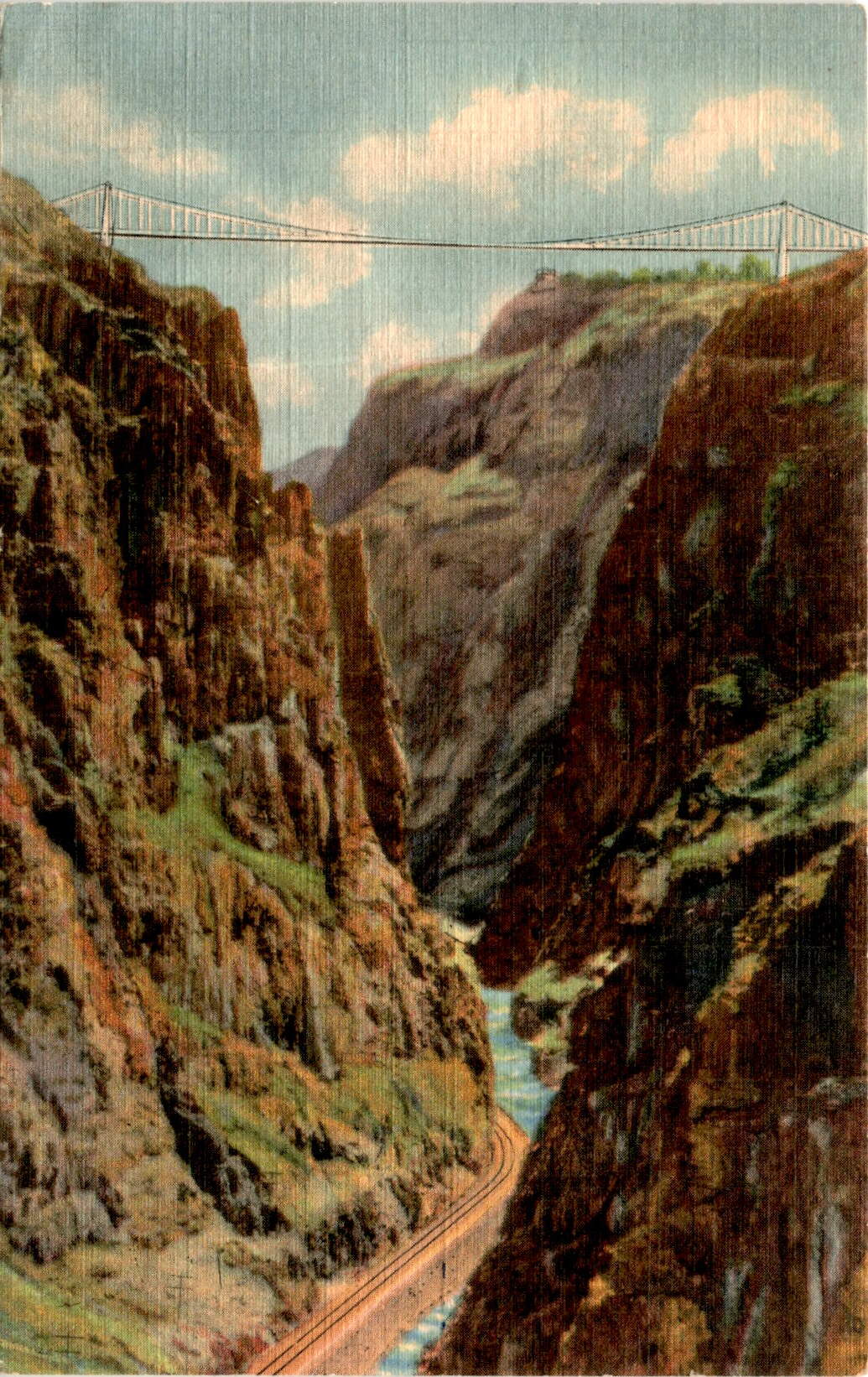 Overall, the postcard captures a sense of joy and wonder as the family embarks on their journey through Colorado. From the majestic views of the Royal Gorge to the thrill of crossing the suspension bridge, Blackie, Pat, and their children are sure to have a memorable and exciting experience. The postcard serves as a reminder of the beauty and adventure that can be found in exploring new places and creating lasting memories with loved ones.
