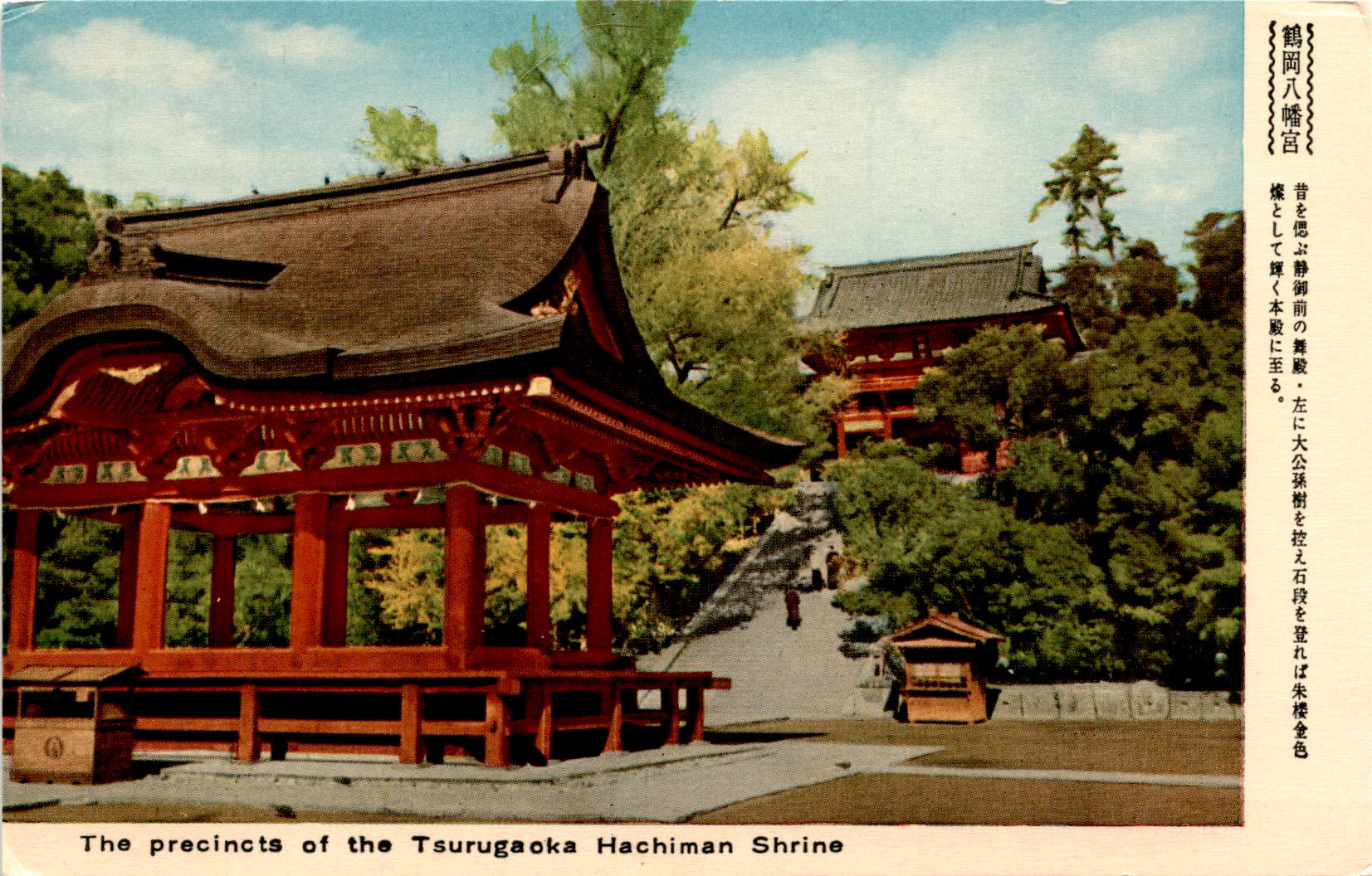 The postcard captures the beauty and serenity of the Tsurugaoka Hachiman Shrine, inviting recipients to experience the peaceful atmosphere for themselves. The shrine’s rich history and cultural significance are evident in every detail, from the traditional architecture to the carefully maintained grounds. Visitors can immerse themselves in the spiritual energy of the shrine and take in the breathtaking views of the surrounding landscape.