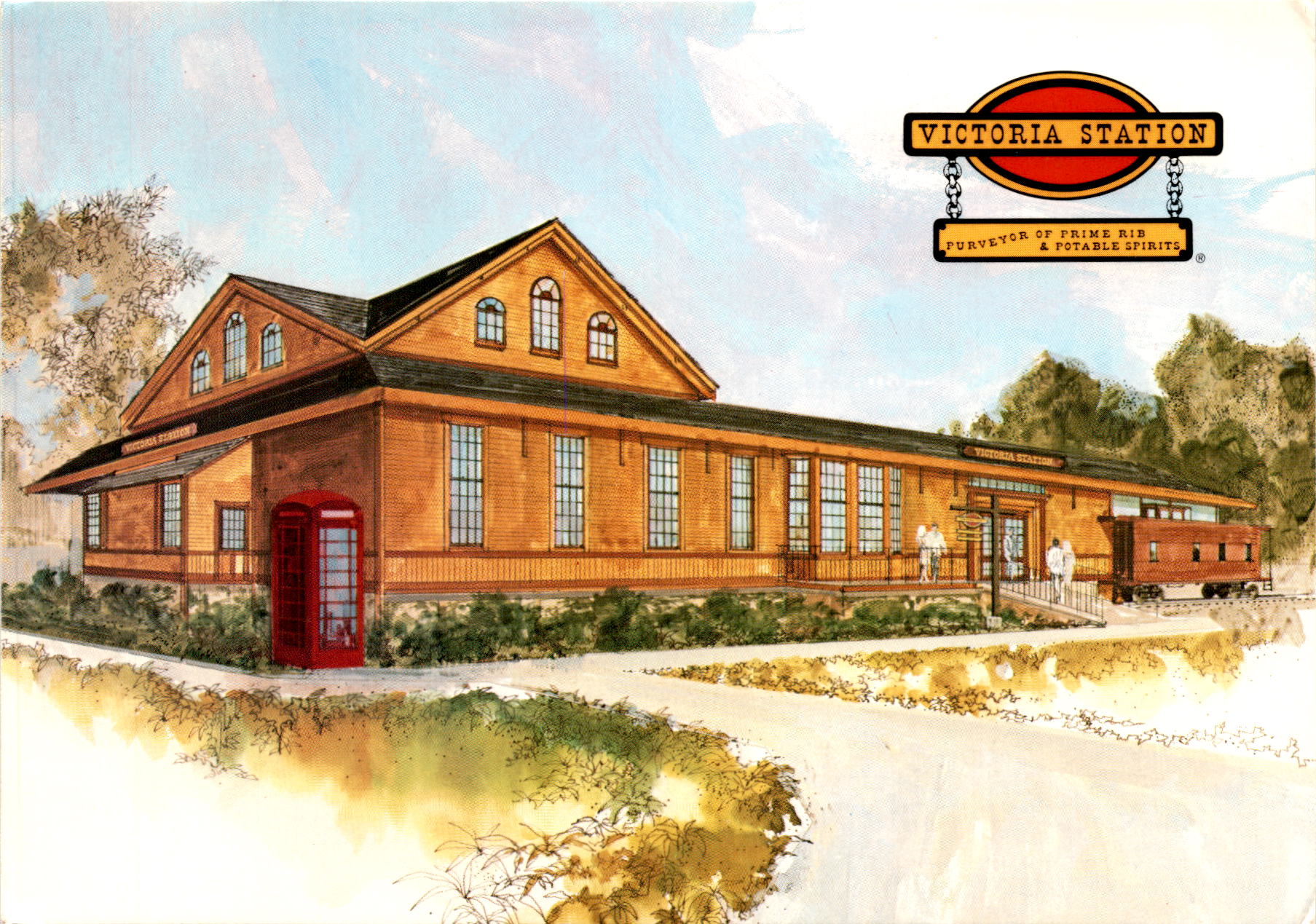 Victoria Station restaurant chain prime rib potable spirits United Postcard