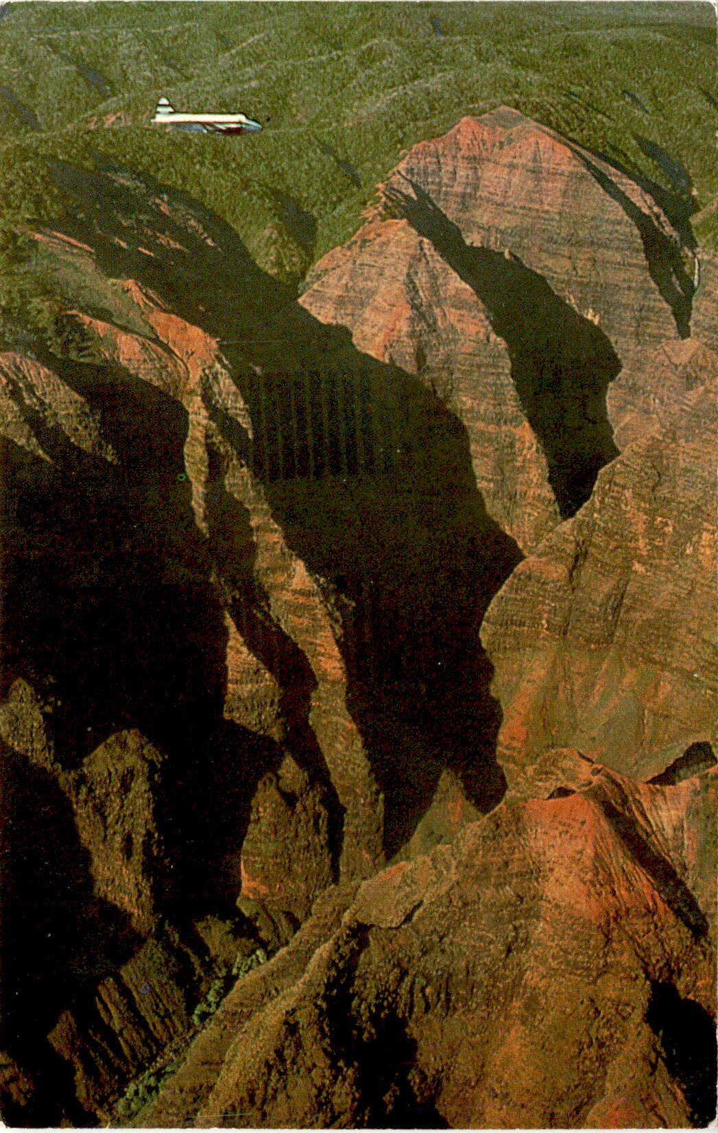 Back of PostcardThe front of the postcard features a stunning photograph of Waimea Canyon in Kauai, Hawaii, often referred to as the “Grand Canyon of the Pacific.” The canyon is over 3,000 feet deep and the view is captured from a HATS airplane, providing a unique perspective of this natural wonder. The postcard is published by Ray Helbig’s Hawaiian Service, showcasing the beauty of Hawaii to visitors near and far.