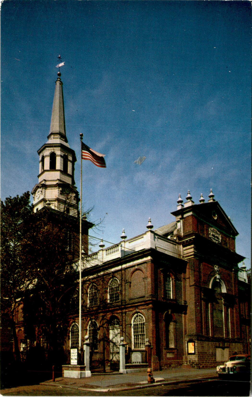 The front of this postcard features a beautiful image of Christ Church in Philadelphia, located on Second Street above Market. This historic church was organized in 1695 and built in 1727, making it a significant landmark in American history. The church was where many of the founders of our nation worshipped, including members of the Continental Congress and the Federal Government. Additionally, the cemetery at Christ Church is the final resting place of seven signers of the Declaration of Independence, adding to its historical importance.On the back of the postcard, we see the photographer credited as Walter H. Miller, who captured the stunning image of Christ Church in Ektachrome. The postcard was published by Walter H. Miller himself, with an address listed as 427 Scotland St. in Williamsburg, Virginia. The postcard also includes a space for the recipient’s address, as well as a reminder to place a stamp in the designated area before sending it off.Overall, this postcard serves as a beautiful and historical memento of Christ Church in Philadelphia. It not only showcases the stunning architecture of the church but also highlights its significance in American history as a place of worship for many of the nation’s founding fathers. The image captured by Walter H. Miller and the information provided on the back of the postcard make it a valuable piece of memorabilia for anyone interested in American history or architecture.