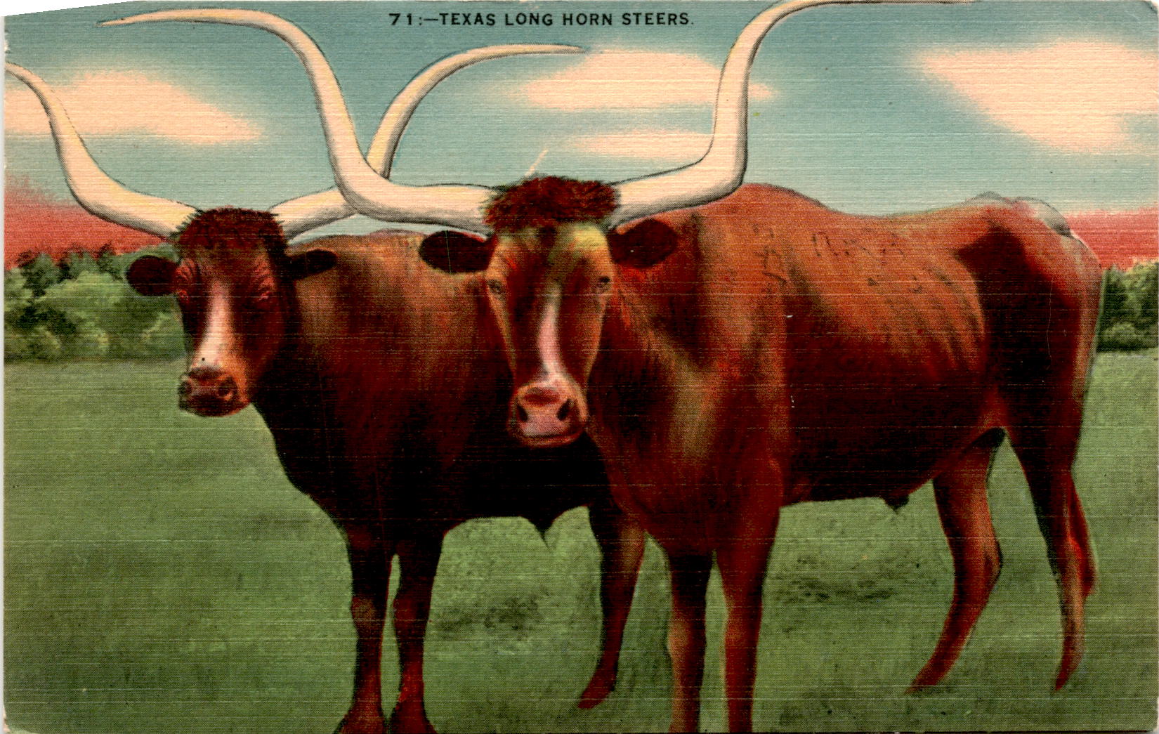 The front of this postcard features a stunning image of 71 Texas Long Horn Steers, showcasing the beauty and majesty of these iconic animals. The postcard was published by the San Antonio Card Co. in San Antonio, Texas, adding a touch of local flair to the design. The vibrant colors and detailed illustration make this postcard a perfect keepsake or souvenir for anyone who loves Texas or cattle.On the back of the postcard, there is a designated space for writing a message, making it easy to send a personalized note to a friend or loved one. The back also includes instructions for addressing the postcard and where to place the stamp, ensuring that it reaches its intended recipient in a timely manner. The simple yet functional design of the back of the postcard allows for easy communication while still maintaining the charm of a traditional postcard.Overall, this postcard is a perfect blend of beauty and functionality, making it a great choice for sending a thoughtful message or simply adding to a collection of postcards. Whether you’re a fan of Texas Long Horn Steers or just appreciate a well-designed piece of stationery, this postcard is sure to delight both the sender and the recipient. Next time you’re looking to send a special message, consider using a postcard like this one to add a touch of charm and personality to your correspondence.