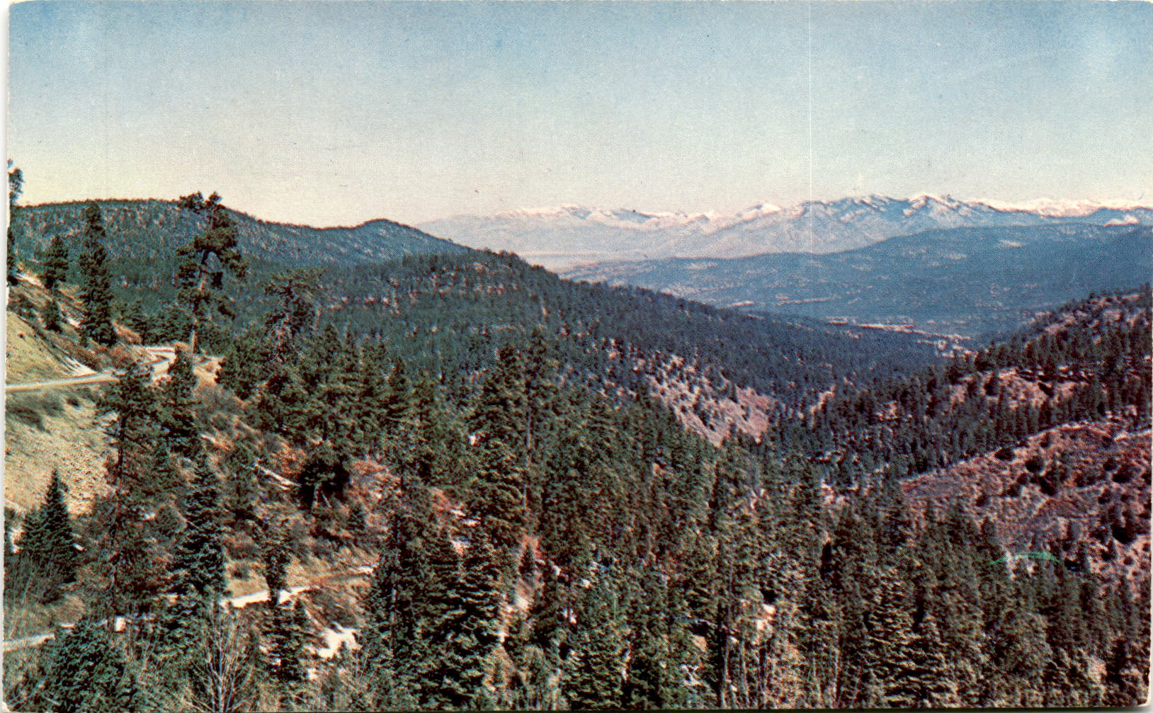 The front of this postcard showcases a stunning view from U.S. Hill, located between Taos and Las Vegas on the New Mexico State Highway 3. The highest point in the state, Mt. Wheeler, with an elevation of 13,151 feet, can be seen in the distance. The famous Taos Indian Pueblo is situated in the valley at the base of this mountain range. The vibrant colors and clear details captured in the photo truly bring this scenic landscape to life.On the back of the postcard, there is a postmark from July 12, 1955, indicating that this card is over 65 years old. The message on the postcard is short and sweet, expressing the sender’s enjoyment of the cool weather and their love for the recipient. The postcard also features a vintage two-cent John Adams postage stamp, adding to its nostalgic charm.Overall, this postcard is a wonderful snapshot of a moment in time, capturing both the beauty of the New Mexico landscape and the sentiment of a personal message. It serves as a reminder of the simple joys of sending and receiving physical mail, as well as the timeless appeal of travel and exploration. The combination of the picturesque view on the front and the heartfelt message on the back makes this postcard a cherished keepsake for both the sender and the recipient.