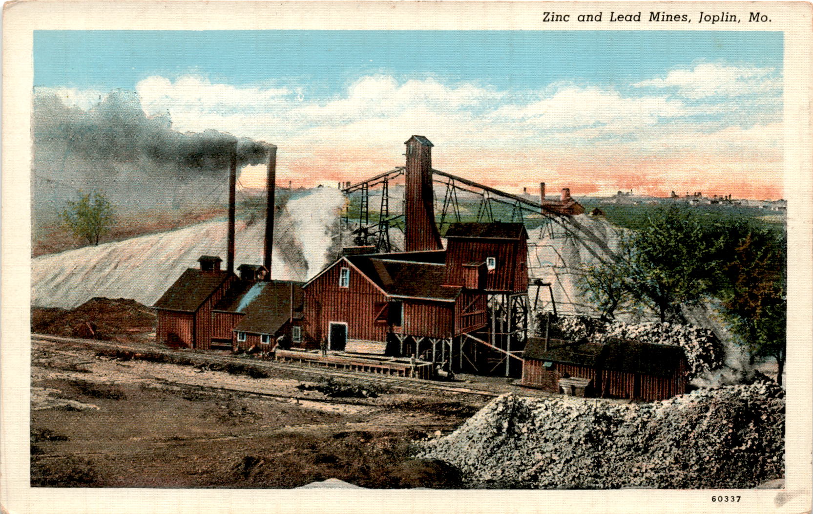 The front of this postcard features a vintage image of zinc and lead mines in Joplin, Missouri. The image captures the industrial landscape of the area, showcasing the importance of mining in the region. The postcard is from the Adams News Co. in Joplin and includes space for writing messages to send to friends or family.On the back of the postcard, there is space designated for the recipient’s address, as well as a reminder to place a one cent stamp in the designated area. The postcard also features the trademark C. T. American Art, indicating that the image on the front was created by an American artist. This postcard serves as a historical snapshot of the mining industry in Joplin and provides a glimpse into the past of this bustling town.Overall, this postcard is a unique piece of history that captures the essence of Joplin’s mining industry. It serves as a reminder of the importance of mining in the region and provides a glimpse into the past through its vintage image. Whether used for sending messages or as a collector’s item, this postcard is a valuable piece of memorabilia from Joplin, Missouri.