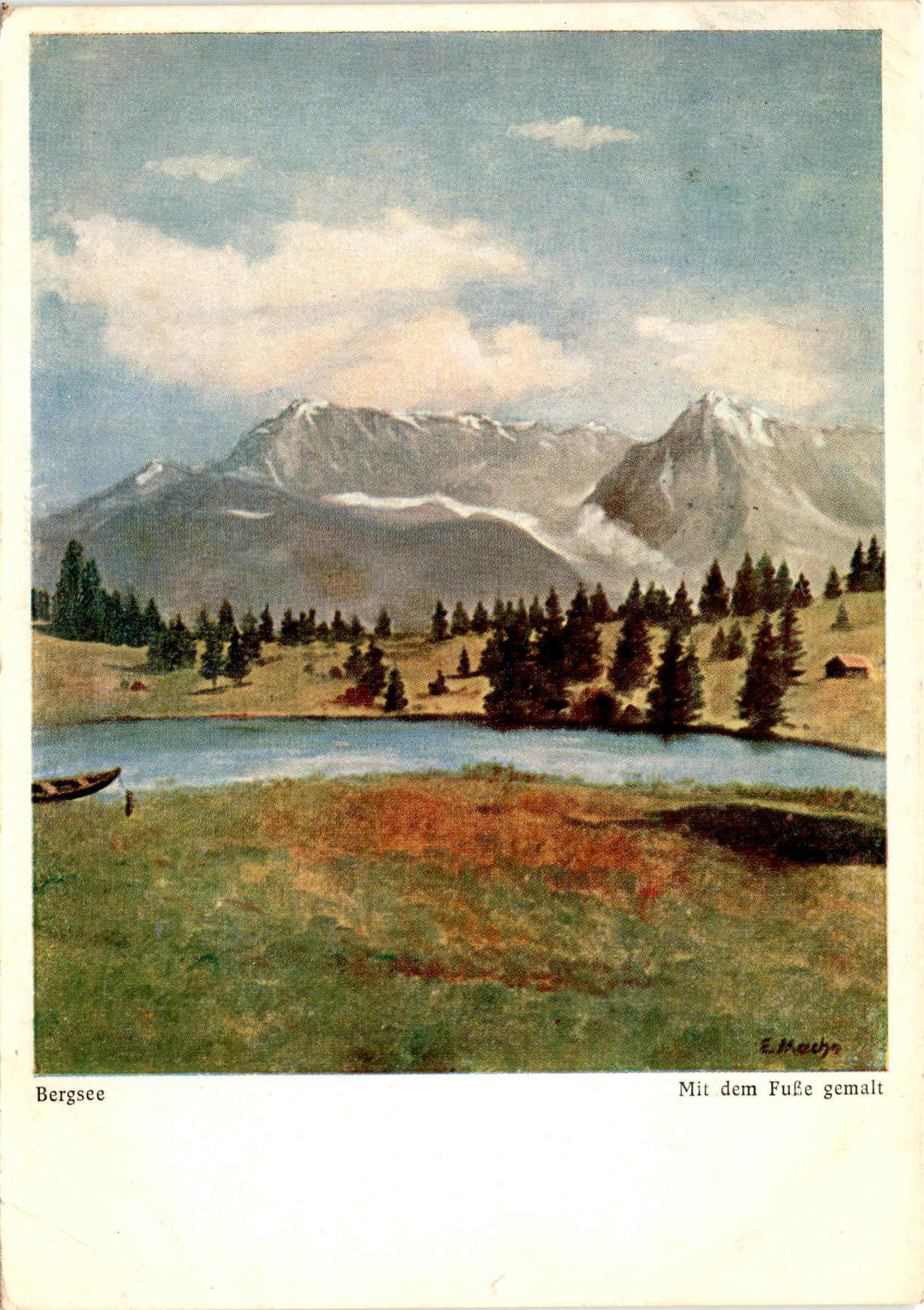 The postcard depicts a beautiful scene of Bergsee, a picturesque mountain lake. The image was created with the artist’s foot, showcasing a unique and creative approach to art. The postcard is a souvenir from the Oktoberfest in Munich in 1958, adding a cultural and festive touch to the message.The message on the postcard is addressed to a dear brother named Karcsi, updating him on the sender’s recent activities and health. The sender mentions a mutual friend who is undergoing a serious operation for gallstones, highlighting the importance of health and well-being. Despite the somber news, the sender expresses gratitude for receiving a letter from Karcsi and their friend Karl, bringing joy and connection during a difficult time.The postcard is a heartfelt gesture of communication and connection between loved ones, despite physical distance and challenges. The sender’s words convey warmth and care, showing the importance of staying in touch and supporting each other through both joyful and difficult moments. The postcard serves as a reminder of the power of communication and the value of relationships in navigating life’s ups and downs.
