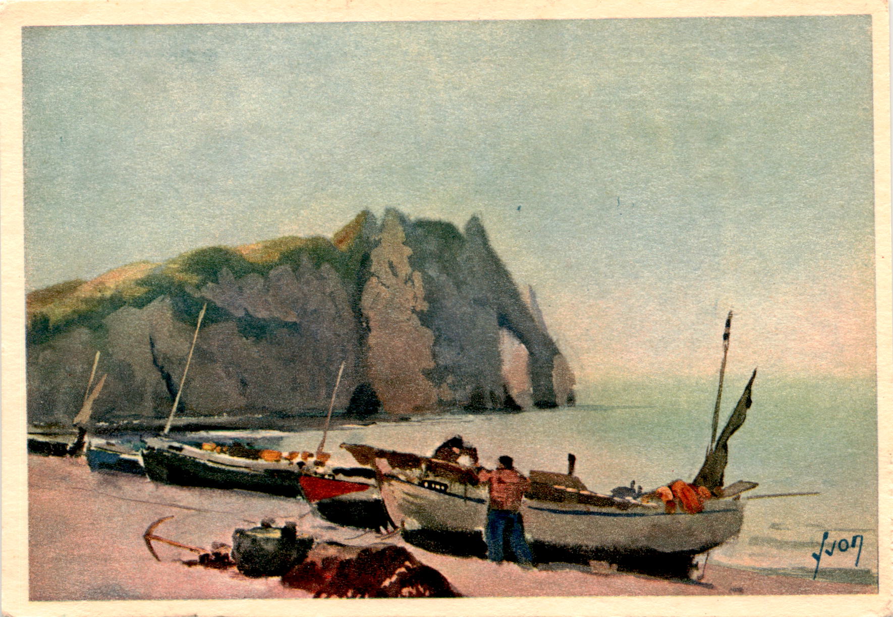 Back of PostcardThe front of this postcard features a stunning image of the Falaises d’Étretat in Normandy, France. The cliffs of Étretat are a famous landmark known for their dramatic white chalk formations and stunning views of the English Channel. The postcard captures the beauty and grandeur of this natural wonder, making it a perfect keepsake for anyone who has visited or dreams of visiting this picturesque location.On the back of the postcard, we see the address of the publisher, Éditions d’Art YVON in Paris. The postcard is a reproduction of the original artwork, showcasing the talent and skill of the artist in capturing the essence of the Falaises d’Étretat. The postcard also includes a note stating Reproduction Interdite Fabrication Française, emphasizing the authenticity and quality of the product.Overall, this postcard serves as a beautiful reminder of the natural beauty and charm of Normandy, France. Whether you have visited the Falaises d’Étretat or simply admire its beauty from afar, this postcard is a lovely memento to cherish and share with others. The detailed artwork and high-quality production make it a special piece of art that captures the essence of this iconic French landmark.