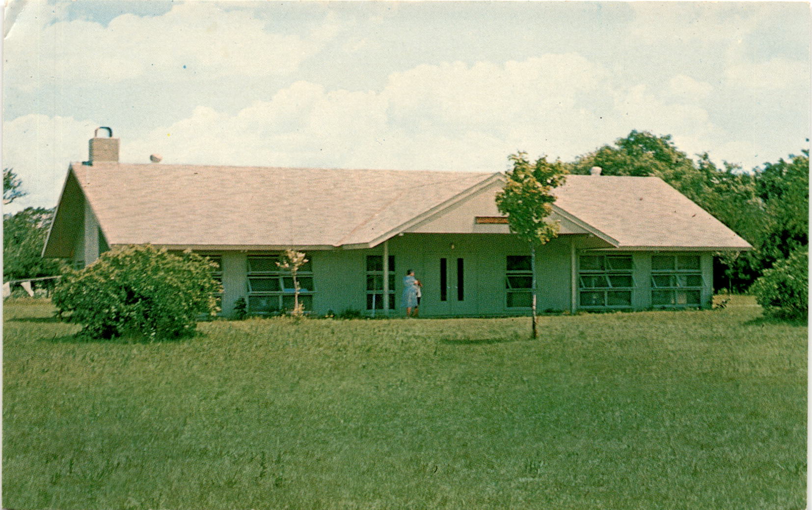Camp Ehawee is a beloved destination for campers of the Riverland Girl Scout Council, Inc. Nestled in the heart of nature, the Eleanora Gund Dining Lodge serves as a central gathering place for meals and activities. The lodge, made possible by a generous gift from the Eleanora Gund Estate, features a large fireplace surrounded by bookcases filled with a camp library and nature and program displays. It’s a cozy and welcoming space where campers can come together to enjoy delicious meals and engage in learning and exploration.Surrounded by the beauty of the outdoors, Camp Ehawee offers a unique and enriching experience for all who visit. From hiking trails to team-building activities, there is no shortage of opportunities for campers to connect with nature and each other. The postcard captures a glimpse of the serene and peaceful atmosphere that campers can expect to find at Camp Ehawee, making it a perfect retreat for those looking to escape the hustle and bustle of everyday life.As campers explore the grounds of Camp Ehawee, they are sure to create lasting memories and friendships that will stay with them long after their time at camp has ended. The postcard serves as a memento of the adventures and experiences shared at this special place, reminding campers of the bonds formed and the lessons learned during their time at Camp Ehawee. Whether enjoying a meal in the dining lodge or embarking on a nature hike, Camp Ehawee offers a truly unforgettable experience for all who have the opportunity to visit.