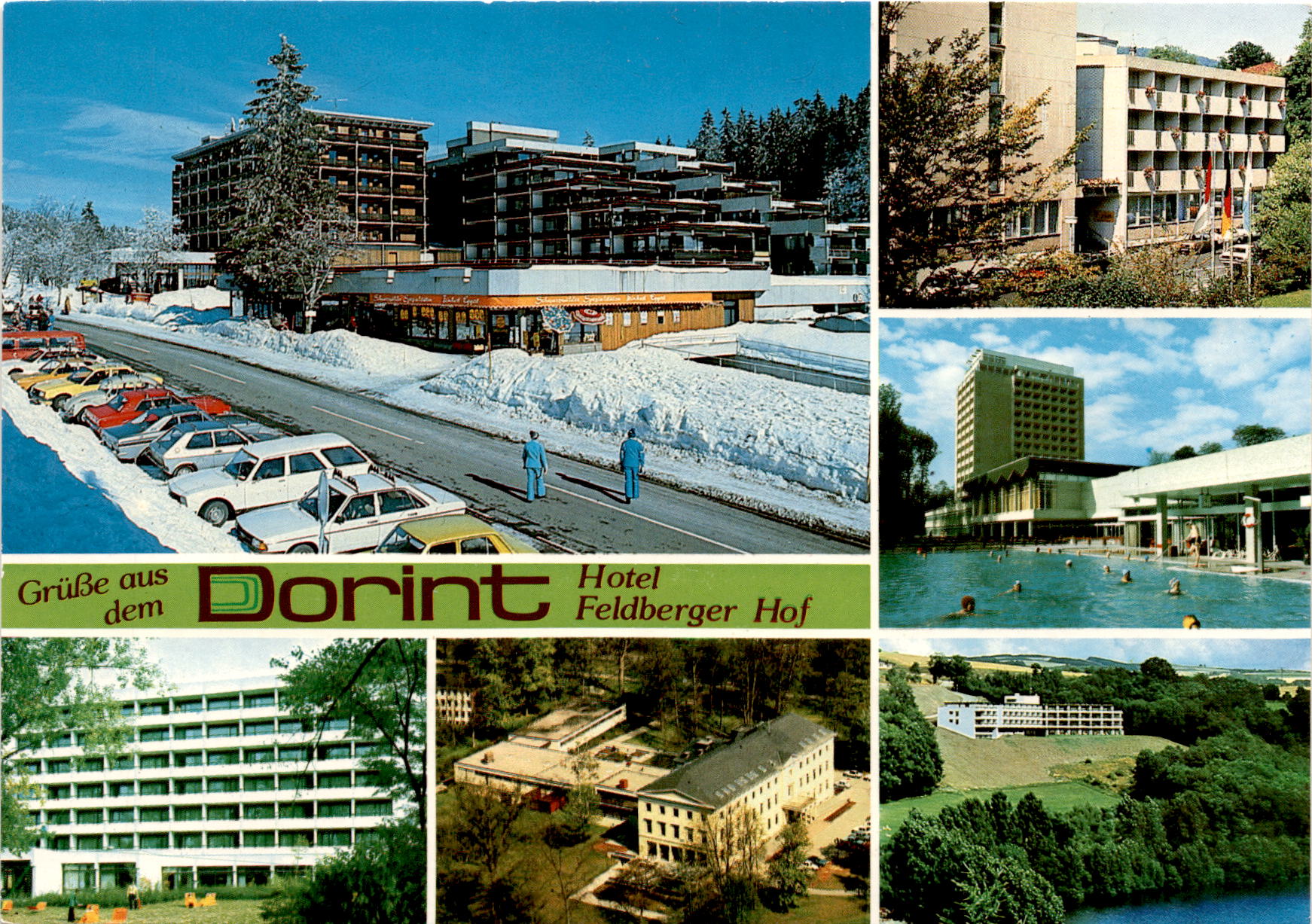 On the back of the postcard, there is information about booking a stay at the Dorint Hotel Feldberger Hof, as well as contact details for the hotel chain’s reservation office in Mönchengladbach. The postcard also lists other Dorint Hotels located in various cities across Germany, including Arolsen, Bad Neuenahr, and Garmisch-Partenkirchen. Each of these hotels offers a unique experience, from spa retreats to mountain getaways, catering to a wide range of travelers.