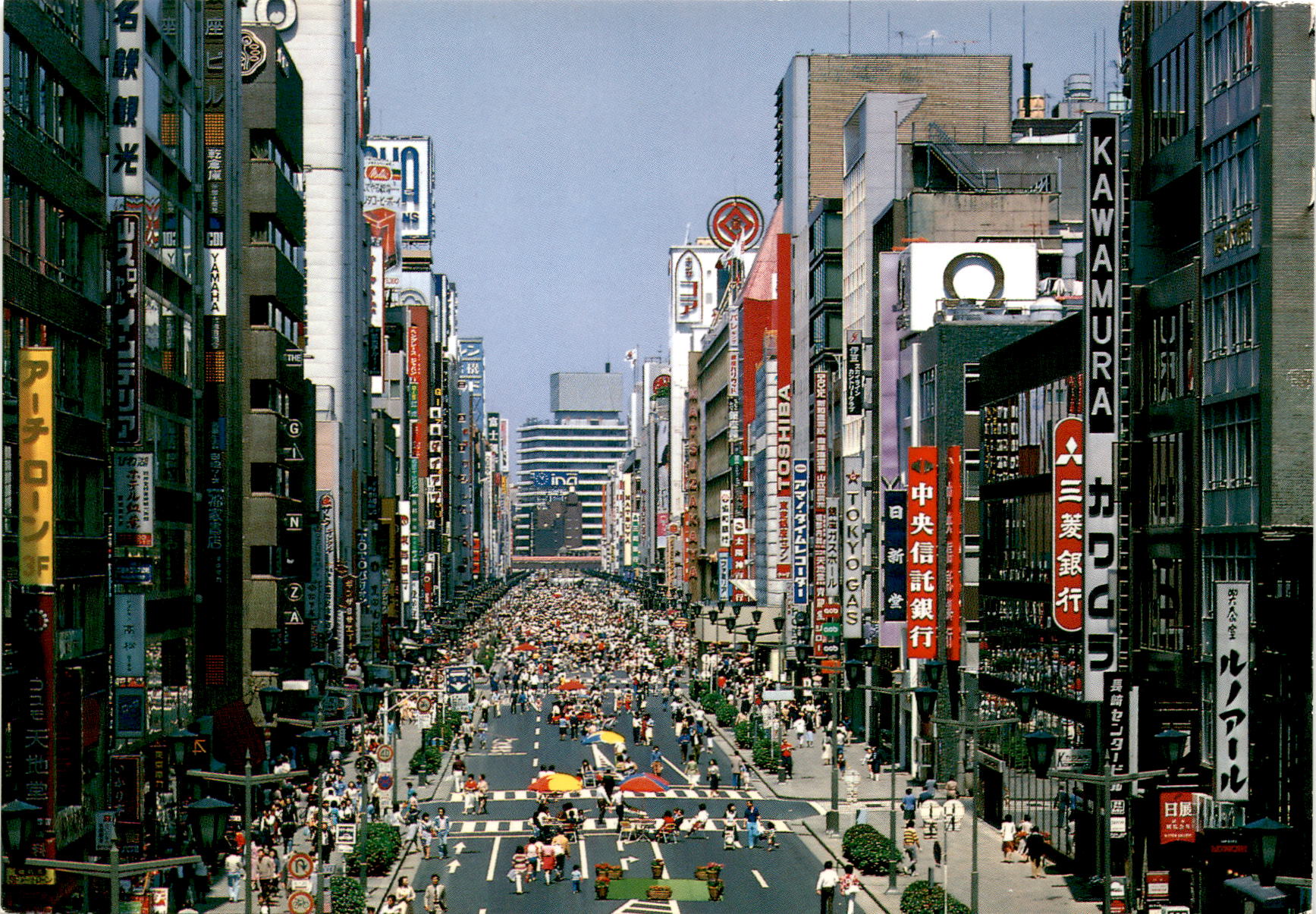 The front of the postcard depicts Ginza Street in Tokyo on a Sunday, where vehicles are banned and pedestrians are free to stroll and enjoy the fashionable shopping center. The bustling street is lined with shops, restaurants, and entertainment venues, making it a popular destination for locals and tourists alike. The vibrant atmosphere and unique architecture of Ginza Street capture the essence of modern Tokyo.On the back of the postcard, various businesses and landmarks in the area are listed, including the Renoir Lock, Yamaha, and the Izu Skyline Country Club. These establishments contribute to the diverse and dynamic character of Ginza, offering a range of services and experiences for visitors. The mix of traditional Japanese elements and modern amenities in Ginza creates a fascinating blend of old and new.Overall, Ginza Street represents the intersection of tradition and innovation in Tokyo, showcasing the city’s rich history and contemporary culture. The postcard serves as a snapshot of this iconic location, inviting recipients to imagine themselves exploring the vibrant streets and discovering the hidden gems of Ginza. Whether shopping for luxury goods, dining at world-class restaurants, or simply taking in the sights and sounds of the city, Ginza Street offers a truly unforgettable experience for all who visit.