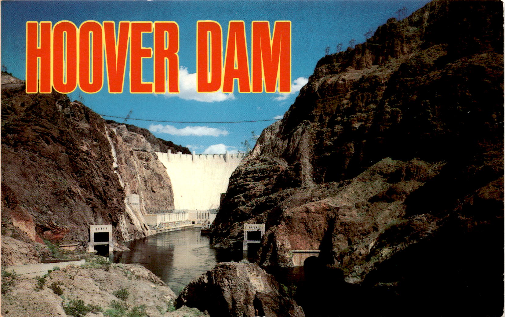 The Hoover Dam is an impressive feat of engineering, standing at a towering 726.4 feet high. Located at the boundary between Arizona and Nevada, this iconic structure was constructed by the United States Bureau of Reclamation. The downstream face of the dam offers a breathtaking view of the Colorado River below, showcasing the power and beauty of this man-made marvel.Visitors to the Hoover Dam can learn about its history and significance at the Visitor’s Bureau in Boulder City, Nevada. The dam serves as a vital source of hydroelectric power and water for the surrounding areas, making it a crucial part of the region’s infrastructure. The Mike Roberts Color Productions postcard captures the grandeur of the dam, with its striking image of the downstream face against the backdrop of the desert landscape.As a popular tourist destination, the Hoover Dam attracts visitors from around the world who come to marvel at its sheer size and engineering prowess. The postcard serves as a memento for those who have visited the dam, or as an invitation for others to come and experience its grandeur for themselves. Whether you’re interested in history, engineering, or simply enjoying the beauty of nature, the Hoover Dam offers something for everyone to appreciate and admire.