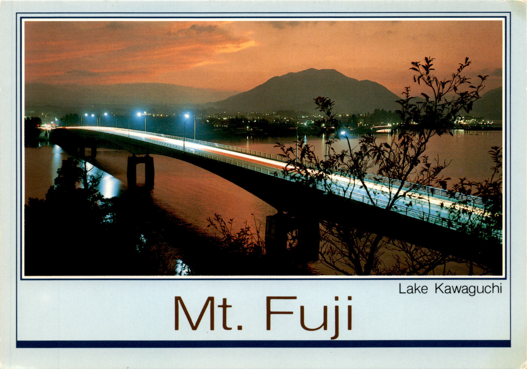 Lake Kawaguchi is a picturesque lake located at the base of Mt. Fuji in Japan. The stunning view of the iconic mountain reflected in the calm waters of the lake is a sight to behold. Visitors can enjoy a leisurely boat ride on the lake or take a stroll along the shore to take in the beauty of the surroundings.Mt. Fuji, also known as Fuji-san, is Japan’s highest mountain and a symbol of the country. It is a popular destination for hikers and nature enthusiasts, offering breathtaking views from its summit. The postcard captures the majestic beauty of Mt. Fuji towering over Lake Kawaguchi, creating a serene and tranquil scene that is sure to leave a lasting impression on anyone who visits.The postcard also features the Pleasant Create Studio and Wood Song, two establishments that offer a unique and creative experience for visitors to Lake Kawaguchi. Whether it’s creating your own artwork at the studio or enjoying a peaceful moment surrounded by nature at Wood Song, these places add to the charm and appeal of the area. Overall, Lake Kawaguchi and Mt. Fuji offer a perfect blend of natural beauty and cultural experiences that make it a must-visit destination in Japan.