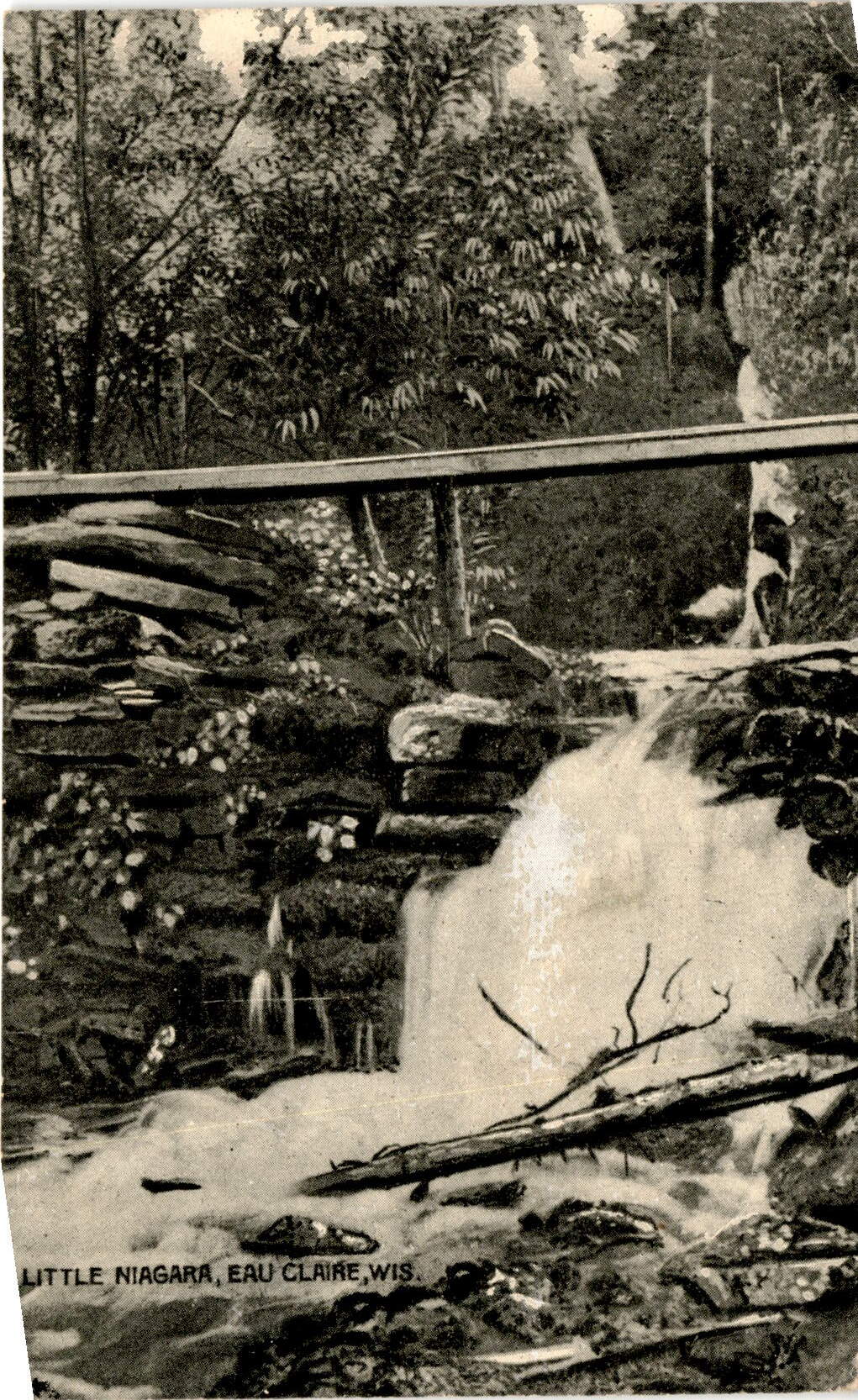 Back of PostcardThe front of the postcard features a beautiful image of Little Niagara in Eau Claire, Wisconsin. Little Niagara is a small waterfall located in the city, known for its picturesque setting and tranquil atmosphere. The postcard was printed in Germany, showcasing the popularity of Eau Claire as a tourist destination even in the early 1900s.