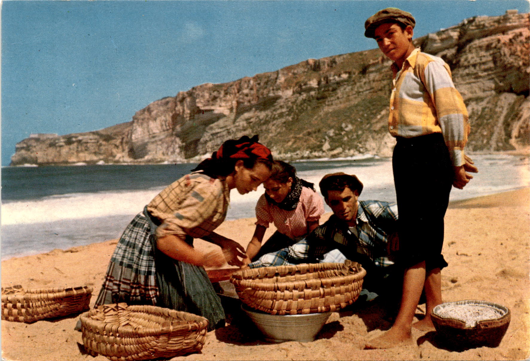 Back of PostcardThe front of this postcard features a scene of fishermen preparing fish in Nazaré, Portugal. Nazaré is a picturesque fishing village known for its beautiful beaches and giant waves that attract surfers from around the world. The tradition of fishing in Nazaré dates back centuries, and the village is famous for its fresh seafood and traditional fishing methods.