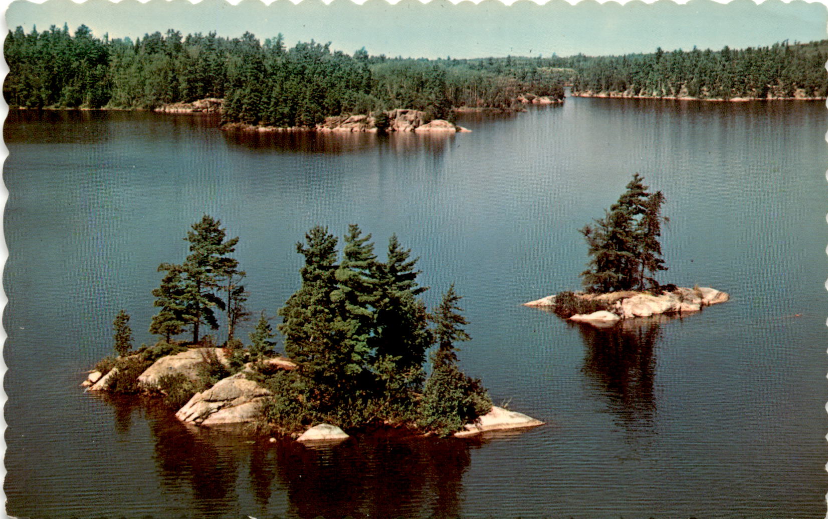 The front of this postcard features a stunning view of Ontario’s Vacation Wonderland in Canada, captured by photographer H. R. Oakman. The image showcases the natural beauty of the region, with lush forests, sparkling lakes, and picturesque landscapes. Ontario is known for its diverse outdoor recreational activities, including hiking, camping, fishing, and boating, making it a popular destination for tourists seeking adventure and relaxation.