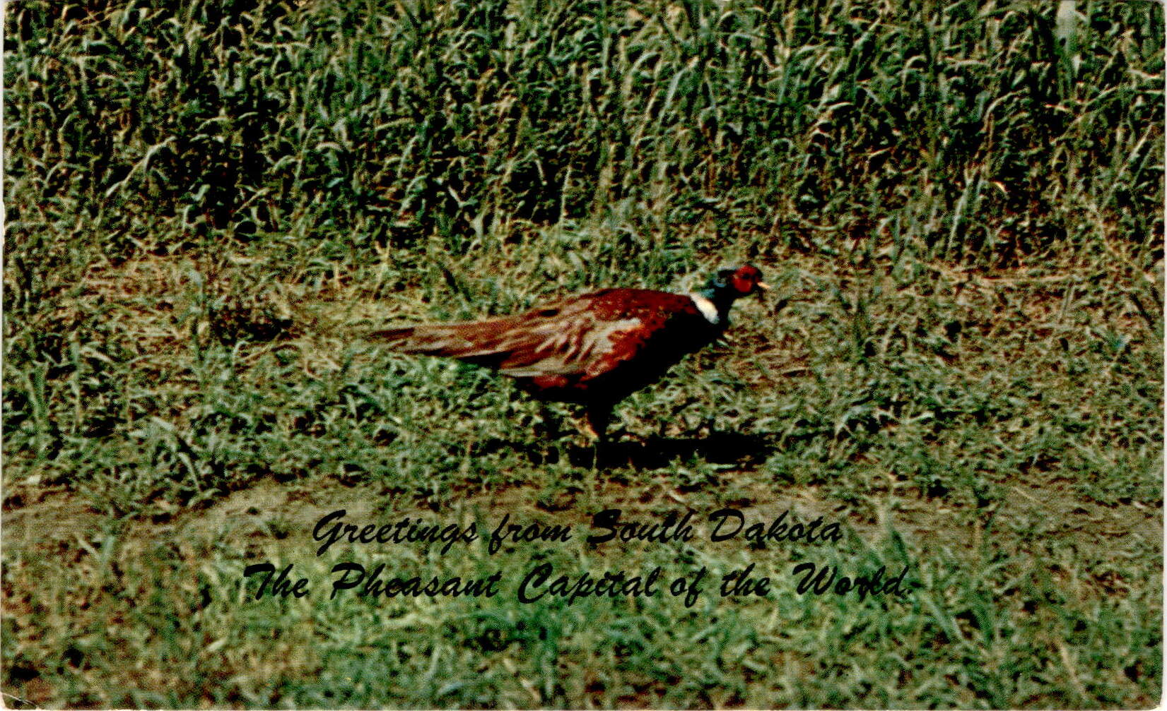 Back of PostcardGreetings from South Dakota! Known as the Pheasant Capital of the World, this state is a haven for hunters looking to bag a few pheasants. The local residents are joined by hunters from all over the world to enjoy the thrill of hunting in South Dakota’s beautiful landscapes. From rolling hills to vast prairies, South Dakota offers a diverse range of hunting opportunities for enthusiasts of all levels.Distributed by the Dakota News Company in Sioux Falls, South Dakota, this postcard captures the essence of the state’s natural beauty and rich hunting culture. The front of the postcard features a stunning image of a pheasant in flight, symbolizing the excitement and adventure that awaits hunters in South Dakota. Whether you’re a seasoned hunter or a beginner looking to experience the thrill of the hunt, South Dakota has something for everyone.The Land of Infinite Variety, South Dakota is a place where you can truly immerse yourself in the great outdoors and experience the wonders of nature. With its wide open spaces and diverse wildlife, this state offers a unique hunting experience that is unlike any other. So grab your gear, put on your hunting boots, and get ready to explore all that South Dakota has to offer. Happy hunting!