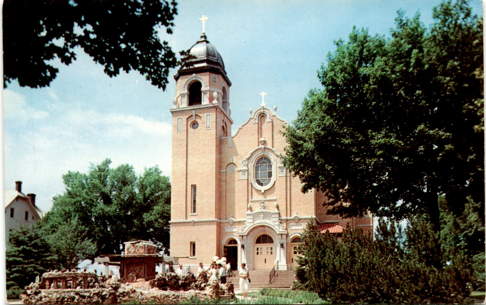 The front of this postcard showcases the stunning St. Peter & Paul’s Catholic Church located at The Grotto of The Redemption in West Bend, Iowa. The intricate details of the church’s architecture are truly breathtaking, with its ornate design and beautiful stained glass windows. The church stands as a testament to the faith and dedication of the community that built it.On the back of the postcard, we see the copyright information from 1959, indicating the historical significance of this image. The L. L. Cook Co. in Milwaukee, Wisconsin, captured this scene in a natural color transparency, preserving the beauty of the church for generations to come. The postcard serves as a reminder of the craftsmanship and artistry that went into creating such a magnificent structure.The Grotto of The Redemption is a must-see destination for anyone visiting West Bend, Iowa. This religious shrine features a series of nine grottos, each depicting a different scene from the life of Christ. The intricate details and craftsmanship of the grottos are truly awe-inspiring, making it a place of both spiritual reflection and artistic appreciation. St. Peter & Paul’s Catholic Church is just one of the many highlights of this unique and sacred site.