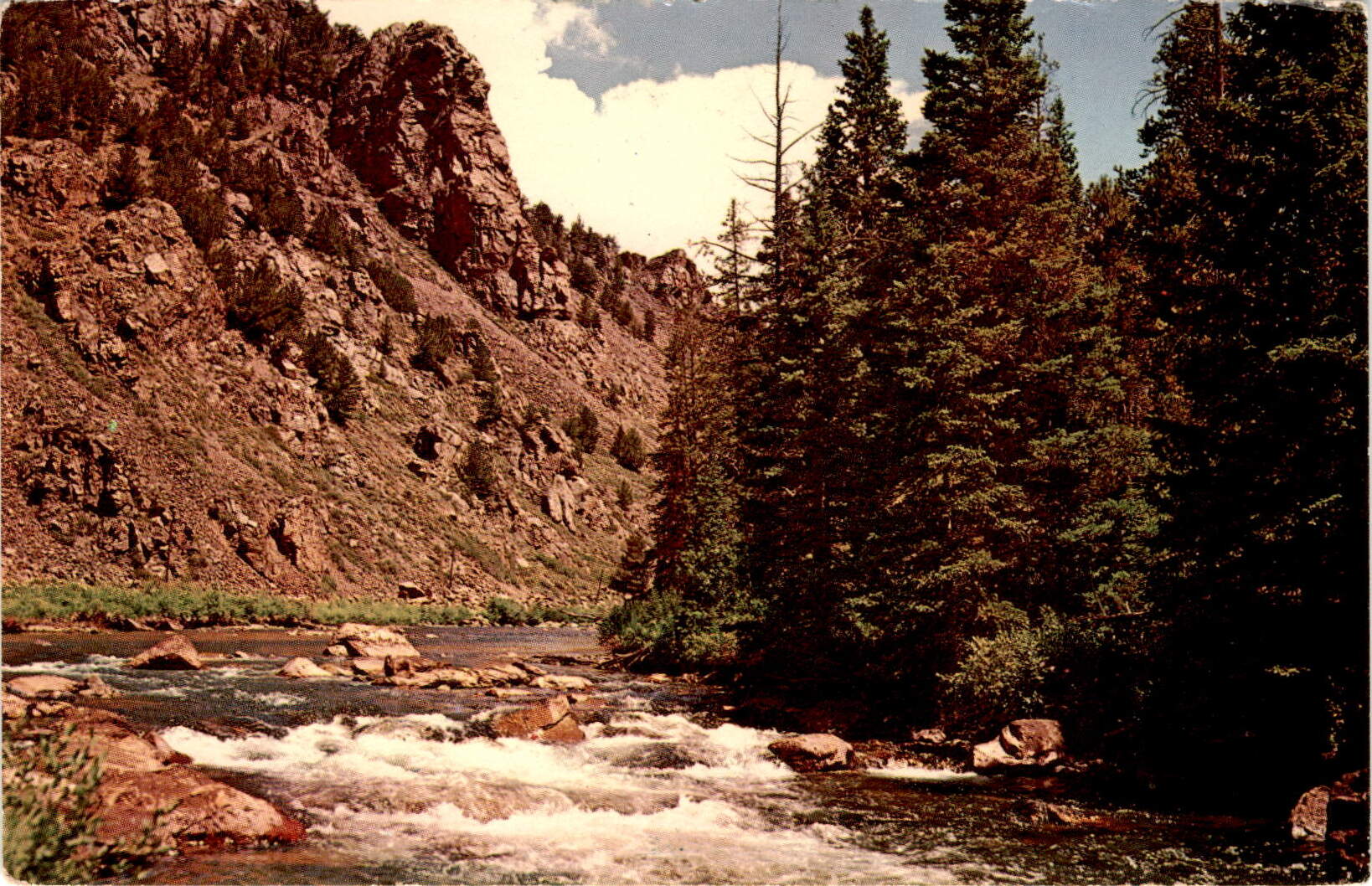 Taylor River, Gunnison, Colorado, postcard, Plastichrome print, nature, Postcard