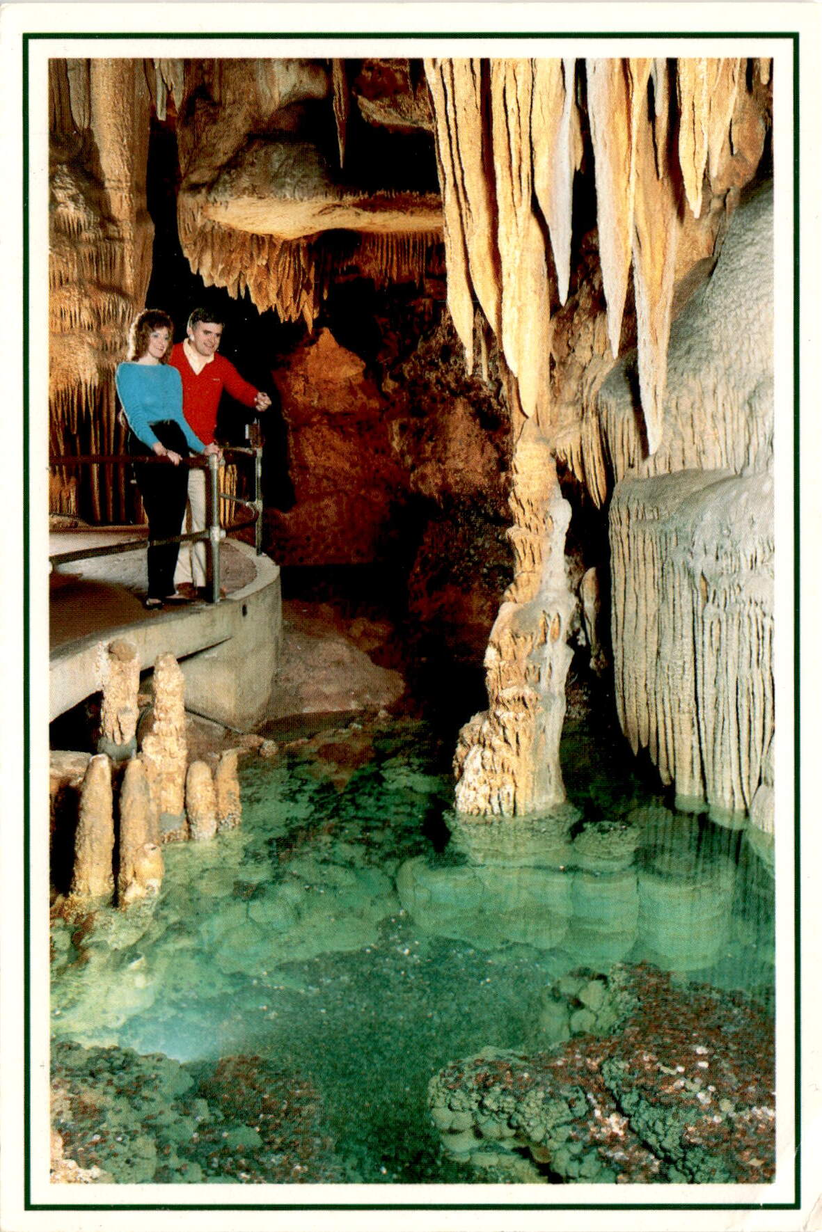 Back of PostcardThe front of the postcard features a picturesque image of the Wishing Well at Luray Caverns in Virginia. The well has a fascinating history, having collected over two million coins weighing a total of 14,500 pounds. The value of the coins exceeds $200,000, and all proceeds are donated to national health organizations. This unique attraction draws visitors from all over the world who come to make a wish and contribute to a good cause.