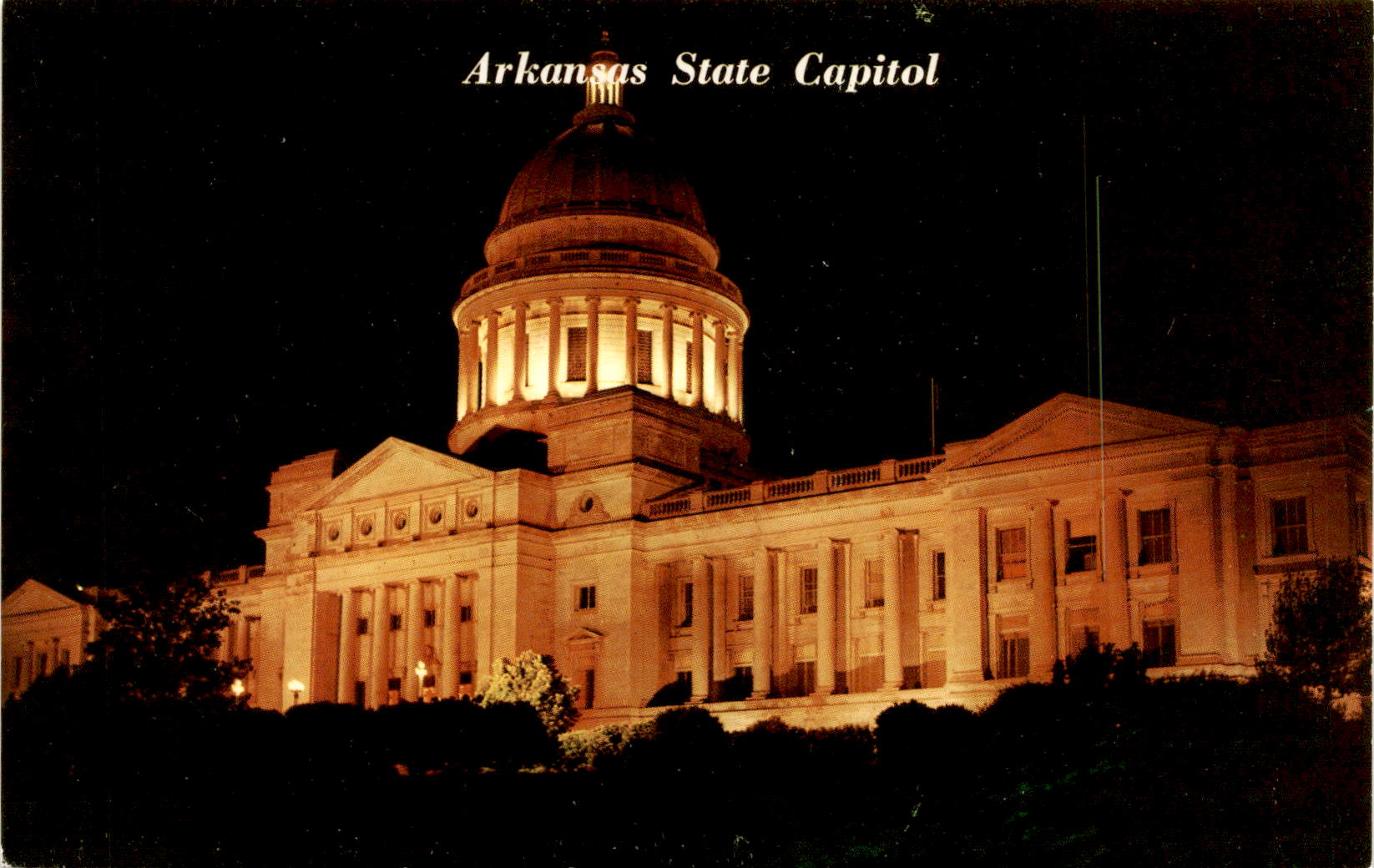 The postcard features a stunning image of the Arkansas State Capitol building, located in Little Rock, Arkansas. The vibrant colors captured by Lee Caskey truly bring the architectural beauty of the Capitol to life. The building itself is a notable landmark in the state, serving as the seat of government for Arkansas.Visitors to the Arkansas State Capitol can explore the historic building and learn about the state’s political history. The Capitol is home to the Arkansas General Assembly and the offices of the Governor and other state officials. The building’s neoclassical design and grand dome make it a must-see destination for tourists and history enthusiasts alike.The postcard serves as a memento for those who have visited the Arkansas State Capitol or a glimpse into the state’s rich history for those who have yet to visit. The image captured on the postcard is a reminder of the importance of preserving and celebrating the architectural and historical significance of landmarks like the Arkansas State Capitol. Whether you’re a local resident or a traveler passing through, the Capitol is a symbol of Arkansas’s past, present, and future.