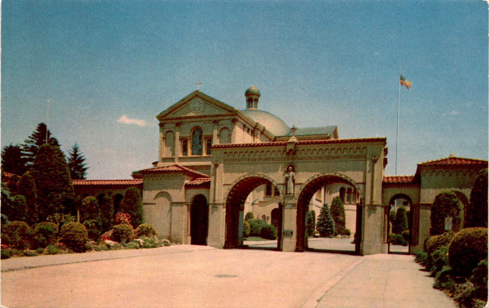 The postcard features the Franciscan Monastery in Washington D.C., also known as the Church of Mount Saint Sepulchre and the Memorial Church of the Holy Land. The architecture of the church is described as Byzantine, modified to reflect Franciscan simplicity. Built in 1899 by Very Rev. Fr. Godfrey Schilling, O.F.M., the church contains reproductions of several sacred shrines from the Holy Land. This unique blend of architectural styles and religious significance makes the Franciscan Monastery a notable landmark in the nation’s capital.Known as The Holy Land of America, the Franciscan Monastery in Washington D.C. is a place of spiritual significance and historical importance. Visitors to the monastery can explore the sacred shrines within the church and learn about the Franciscan order’s connection to the Holy Land. The dedication of the church in 1899 marked a significant moment in the history of the Franciscan community in America, and the monastery continues to be a place of pilgrimage and prayer for believers from around the world.The postcard, produced by Capitol Souvenir Company, Inc., captures the beauty and significance of the Franciscan Monastery in Washington D.C. with a simple yet striking image. The inclusion of the message PLACE STAMP HERE suggests that the postcard was meant to be sent as a souvenir or memento of a visit to the monastery. Whether as a keepsake for oneself or a gift for a loved one, this postcard serves as a reminder of the rich history and spiritual heritage embodied by the Franciscan Monastery in the heart of the nation’s capital.