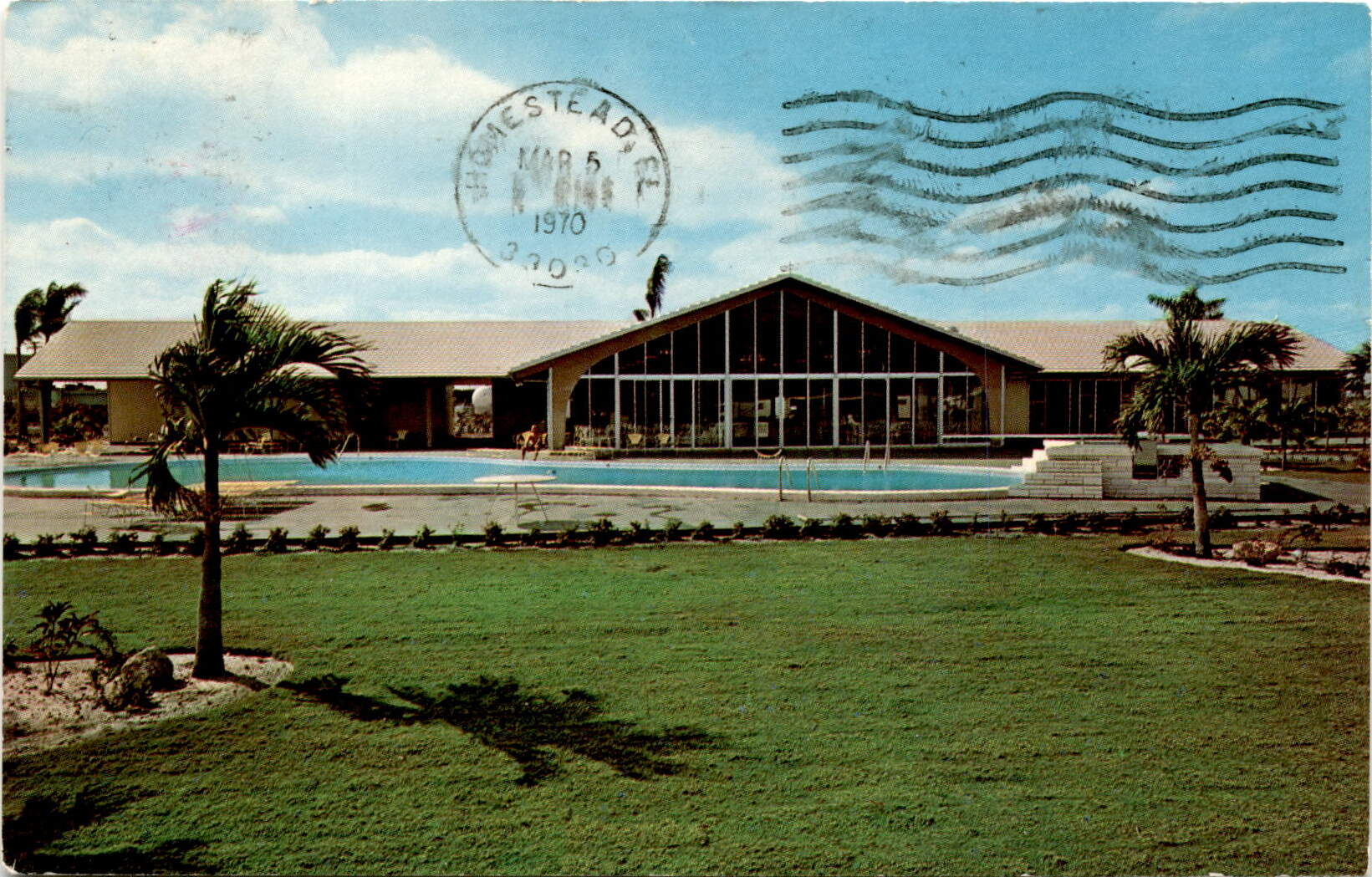The postcard depicts a picturesque scene of Park City Mobile Home Estates in Fort Lauderdale, Florida. Developed by Walt Neal, the community boasts King-Size Tropical Landscaped grounds, two recreation buildings, a heated swimming pool, putting greens, shuffleboards, city water and sewers, and more. The postcard invites recipients to come and experience country club living at its best, with all the amenities one could desire in a residential community.The message on the back of the postcard is addressed to Mrs. Robert Scott in Detroit, Michigan. The sender expresses their enjoyment of the ride down to Florida and mentions that Muriel has settled in well at home. They also mention the friendly atmosphere in the park and how they have made many friends there. The postcard serves as a way to keep in touch with loved ones and share experiences from their time in the mobile home community.The postcard was published by Ubell & Mack Photographers, Inc. in Hollywood, Florida, and printed by Dexter Press, Inc. in West Nyack, New York. The image on the front showcases the beauty and amenities of Park City Mobile Home Estates, enticing recipients to visit and potentially make it their new home. The postcard captures a moment in time, offering a glimpse into the lifestyle and community spirit of this Florida mobile home park.
