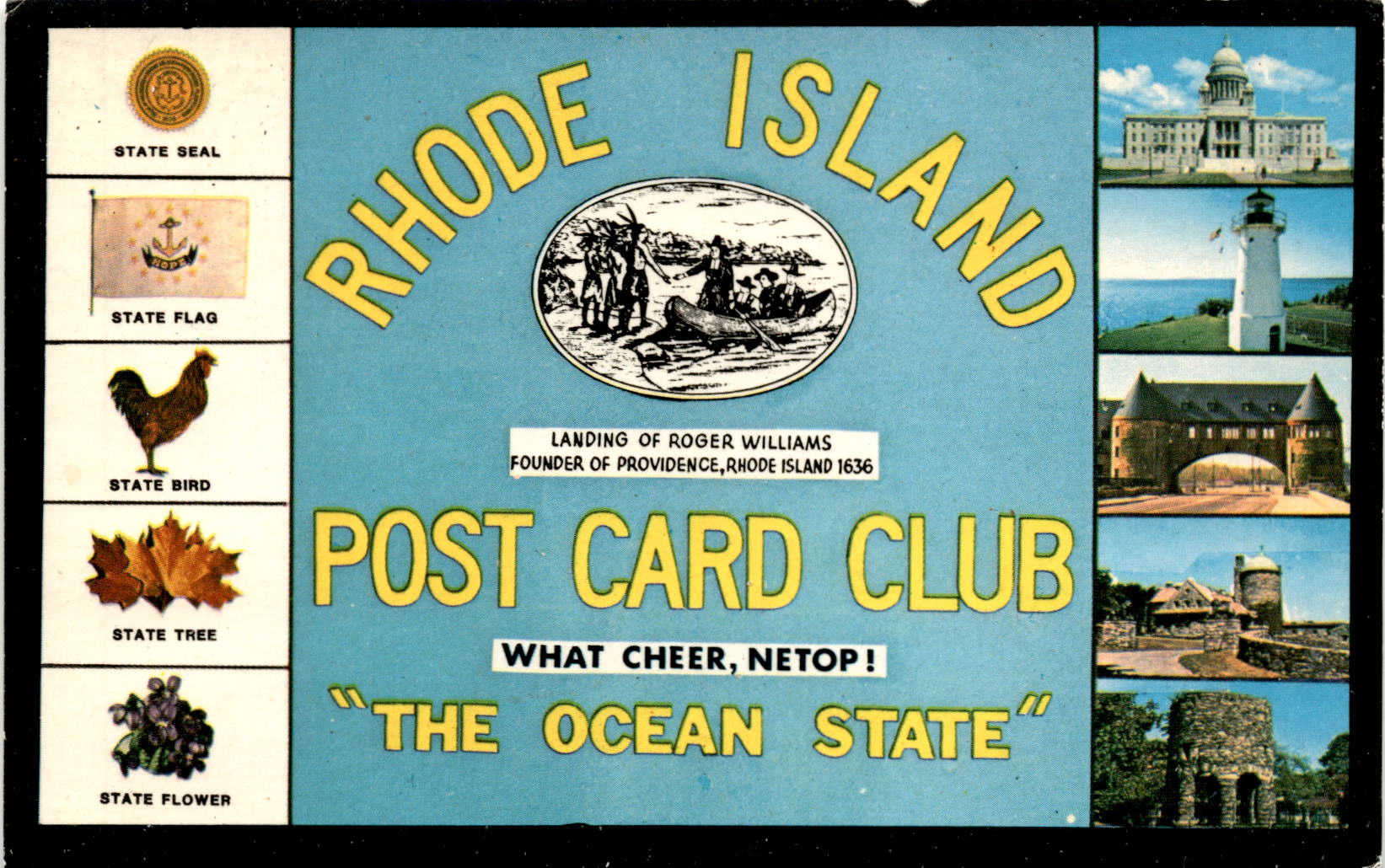 The postcard features the state symbols of Rhode Island, including the state seal, state flag, state bird, and state tree. It also commemorates the landing of Roger Williams, the founder of Providence, Rhode Island in 1636. The postcard is a part of the Rhode Island Post Card Club, which was organized in May 1958 and holds monthly meetings, except during July and August. The club also hosts an annual exhibit in October, showcasing scenes from Rhode Island’s five counties.The scenes depicted on the postcard include landmarks from Providence, Kent, Washington, Bristol, and Newport counties in Rhode Island. Some notable locations featured are the State Capitol, Warwick Light Station, Narragansett Towers, Colt State Park, and The Old Stone Mill. The postcard was published in 1979 by the Rhode Island Post Card Club and produced by Plastichrome by COLOURPICTURE in Boston, Massachusetts. For more information, contact Joe Moscaritolo in Medford, Massachusetts.This postcard serves as a visual representation of the beauty and history of Rhode Island, known as The Ocean State. It captures the essence of the state’s diverse landscapes and rich heritage, from its bustling cities to its serene coastal towns. The postcard is a reminder of the importance of preserving and celebrating the unique culture and landmarks of Rhode Island for future generations to enjoy. Whether you’re a resident or a visitor, this postcard is a keepsake that showcases the charm and character of the smallest state in the United States.