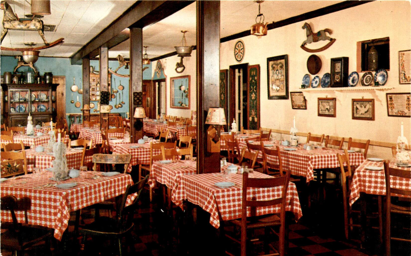 The Water Gate Inn, located on the Potomac River in Washington, D.C., is a charming establishment known for its Pennsylvania Dutch authentic decorations by Genevieve Hendricks, A.I.D. The inn offers air-conditioning in the summer and crackling log fires in the winter, creating a cozy atmosphere for guests. Specialties on the menu include hot popovers, Mennonite chicken, rare roast beef, seafood, and Dutch apple-cheese pie, making it a must-visit for food enthusiasts.Owned by Marjory Hendricks, the Water Gate Inn is open every day of the year from 11:30 a.m. to 10 p.m., providing guests with a convenient dining option in the heart of the city. Free parking is available for patrons, making it easy to access the inn for a delicious meal. The postcard also includes the address of Henry S. Fullerton 3rd, located in Westfield, N.J., showcasing the connection between different cities and the shared love for the Water Gate Inn.Whether you’re a local resident or a visitor to Washington, D.C., the Water Gate Inn is a must-visit destination for a memorable dining experience. With its authentic decorations, delicious menu offerings, and convenient location on the Potomac River, the inn offers a unique and enjoyable atmosphere for all guests. Be sure to stop by for a meal and experience the charm of the Water Gate Inn for yourself.