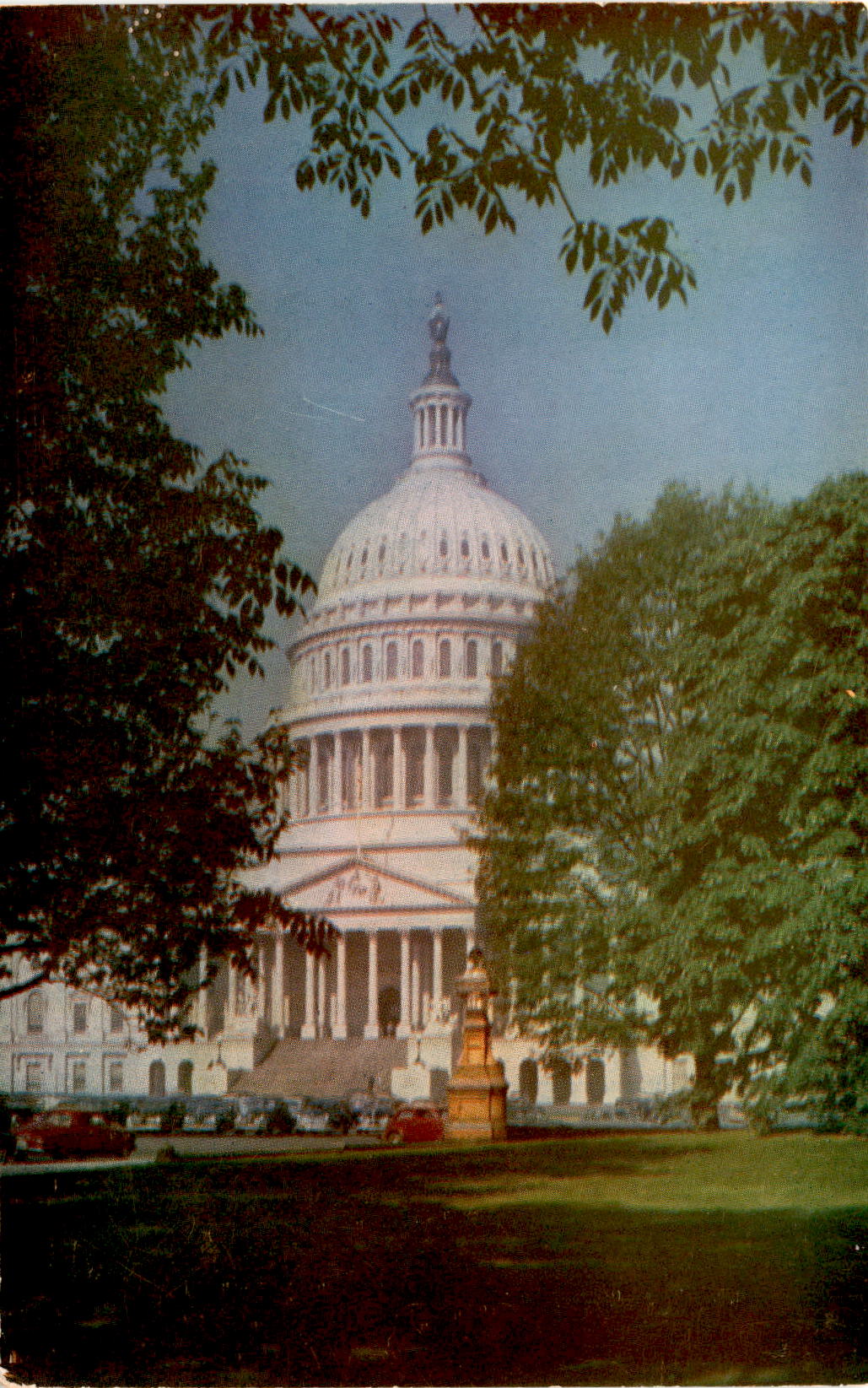 The postcard features a stunning view of the Capitol Building in Washington, D.C., as seen from a park area. The image captures the grandeur and beauty of this iconic American landmark, showcasing its impressive architecture and historical significance. The Capitol Building serves as the home of the United States Congress and is a symbol of democracy and government in the United States.The postcard’s vibrant colors and high-quality printing, done using Kodachrome technology, bring the scene to life and make it a beautiful keepsake for anyone who receives it. The postcard was published for Uberman Novelty Co., a company based in Washington, D.C., known for producing a variety of novelty items and souvenirs for tourists and visitors to the nation’s capital. The postcard serves as a reminder of the rich history and culture of Washington, D.C., and the important role it plays in American politics and society.The Capitol Building has a long and storied history, dating back to its construction in the late 18th century. Designed by architect William Thornton, the building has undergone several renovations and expansions over the years, but its iconic dome and neoclassical design have remained a constant symbol of American democracy. Today, the Capitol Building is a popular tourist destination, attracting millions of visitors each year who come to learn about the history of the United States and witness the workings of the federal government up close.