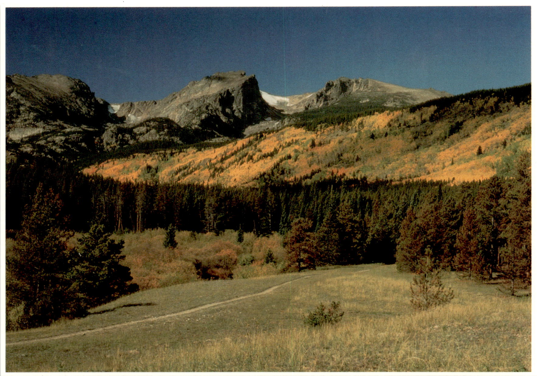 The postcard showcases a stunning view of Bierstadt Moraine in autumn, with the mountainside displaying a vibrant array of colors as the aspen leaves transition from green to shimmering autumn gold. The photo, taken by Ferrel Atkins, captures the beauty of Rocky Mountain National Park in all its glory. The image is a reminder of the natural wonders that can be found in the park, and serves as a memento for those who have visited or dream of exploring the Rocky Mountains.The copyright on the postcard indicates that it was produced in 1992 by the Rocky Mountain Nature Association, a nonprofit organization dedicated to supporting education and research in Rocky Mountain National Park. The association’s mission is to promote the preservation and appreciation of the park’s natural and cultural resources. The postcard serves as a way to raise awareness and funds for the organization’s important work in protecting the park for future generations to enjoy.The postcard provides a glimpse into the beauty and majesty of Rocky Mountain National Park, inviting viewers to imagine themselves immersed in the stunning landscape. Whether it serves as a keepsake for a past visit or inspiration for a future adventure, the postcard captures the essence of the park’s natural wonders. It is a reminder of the importance of preserving our national parks and the need to support organizations like the Rocky Mountain Nature Association in their efforts to protect these treasured landscapes.