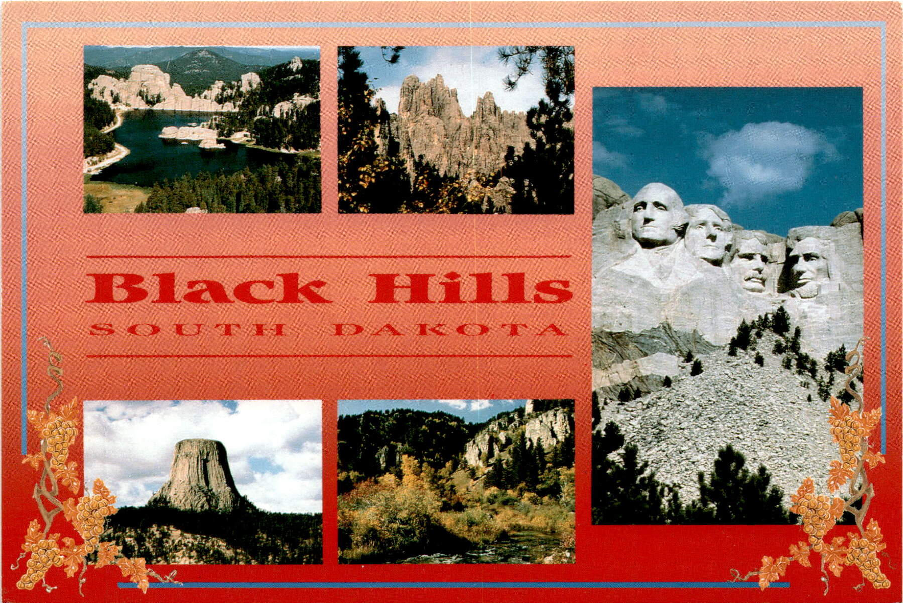 The postcard showcases the stunning beauty of the Black Hills in South Dakota, featuring iconic landmarks such as Sylvan Lake, Spearfish Canyon, and Devil’s Tower in Wyoming. The range offers a diverse array of landscapes, from rocky formations to lush forests, making it a popular destination for nature lovers and outdoor enthusiasts. The postcard is a reminder of the natural wonders that can be found in this region.Published by Western Souvenirs, Inc., the postcard captures the essence of the Black Hills with its picturesque imagery and vibrant colors. The front of the postcard displays a scenic view of the Black Hills, while the back provides information about the publisher and address. The postcard serves as a memento for travelers who have visited the area or a source of inspiration for those planning a trip to South Dakota.Whether you have visited the Black Hills before or are dreaming of exploring this beautiful region, this postcard is a perfect keepsake to cherish. The Black Hills offer a unique blend of natural beauty and outdoor adventures, making it a must-visit destination for anyone seeking a memorable experience in South Dakota. With its stunning scenery and rich history, the Black Hills continue to captivate visitors from around the world.
