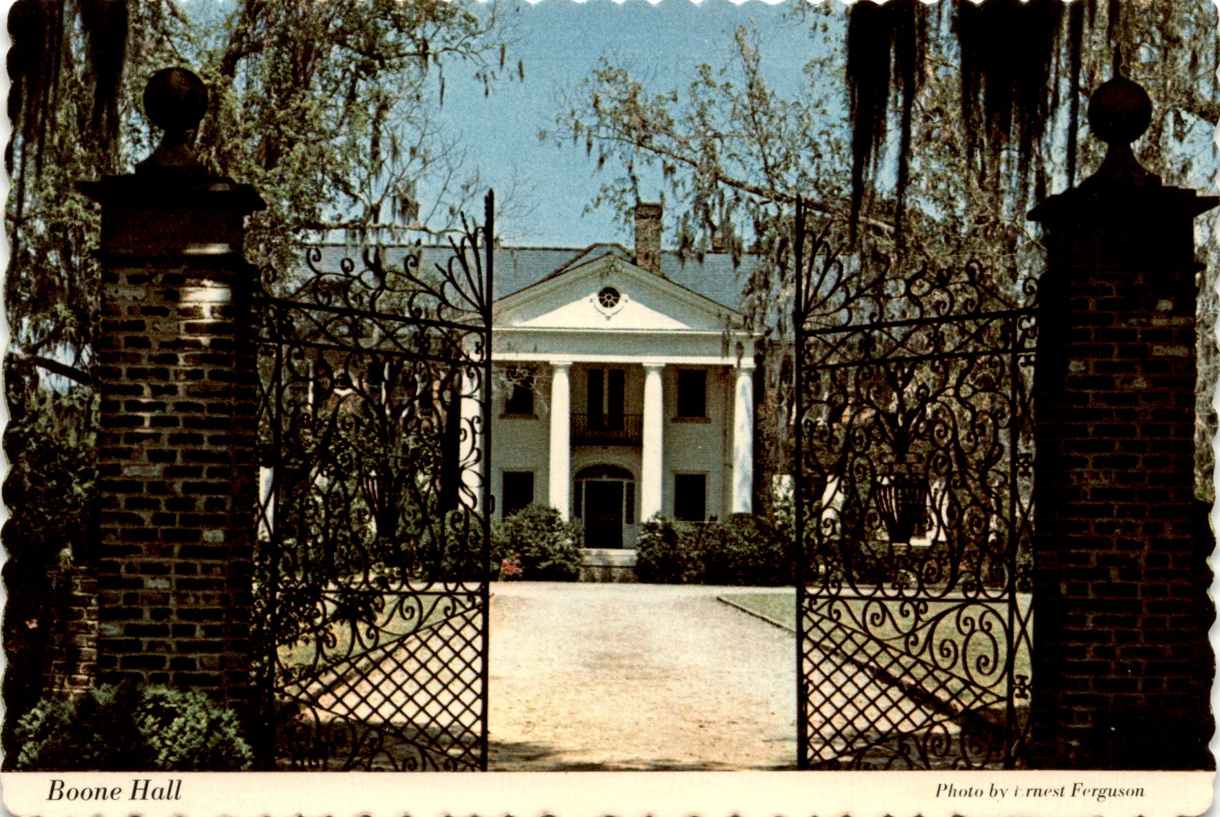 Boone Hall Plantation in Charleston, South Carolina is a place that truly transports visitors back in time. The Avenue of Oaks and iron gates at the entrance of the plantation house evoke thoughts of yesteryear, making it a must-visit destination for history enthusiasts. The postcard captures the beauty and charm of Boone Hall, with a photo by Ernest Ferguson that perfectly showcases the grandeur of the plantation.The Charleston Post Card Co., Inc. and Dexter Press have collaborated to create a stunning postcard that showcases the beauty of Boone Hall Plantation. The image on the front of the postcard is a testament to the rich history and heritage of the plantation, inviting visitors to explore its grounds and learn more about its past. The back of the postcard provides contact information for the Charleston Post Card Co., Inc., allowing visitors to easily purchase their own memento of their visit to Boone Hall.Whether you’re a history buff or simply appreciate the beauty of historic landmarks, Boone Hall Plantation is a must-visit destination. The postcard serves as a reminder of the beauty and charm of this historic site, encouraging visitors to explore its grounds and learn more about its fascinating past. With its Avenue of Oaks and iron gates, Boone Hall Plantation is a place where history comes alive, making it a truly unforgettable experience for all who visit.