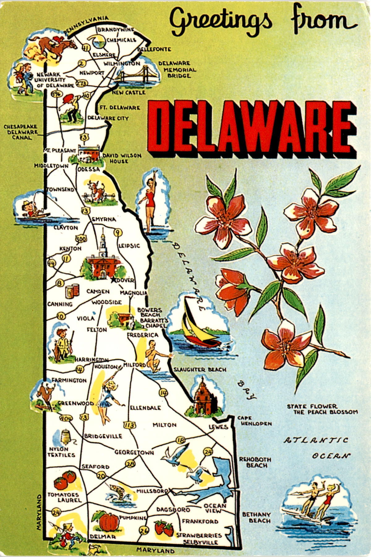 Delaware, First State, Diamond State, Wilmington, Dover, Rehoboth Postcard