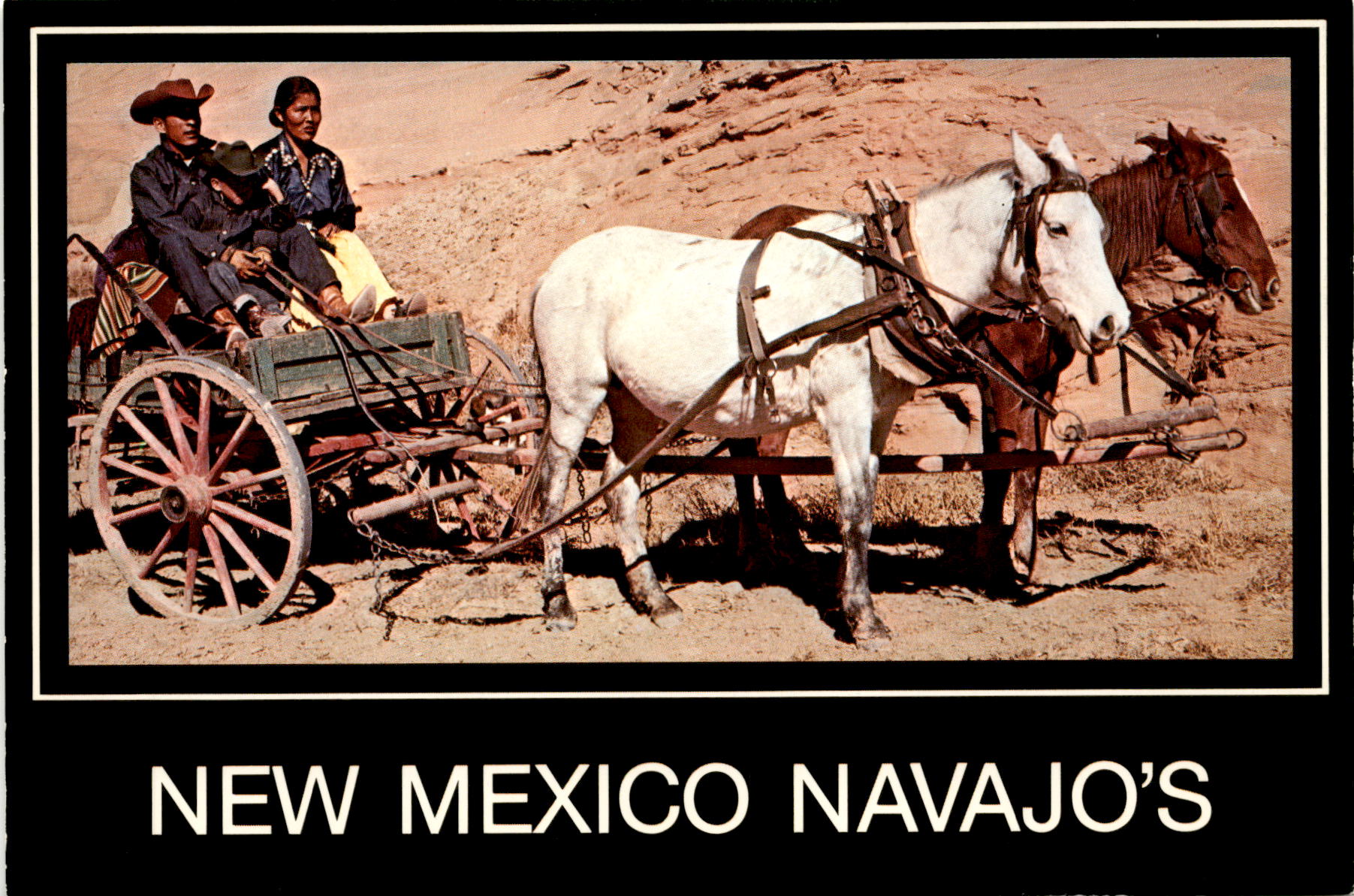The postcard features a stunning image of a typical Navajo family in the Gallup, New Mexico area, part of the Navajo Reservation that covers a significant portion of northwestern New Mexico and extends into Arizona. The Enchantment series captures the beauty and culture of the Navajo people, showcasing their traditional way of life in a picturesque setting.The back of the postcard provides information about the distributor, Candelaria Colorgraphics, based in Albuquerque, New Mexico. The postcard is part of the KROMEĀ® CARD series, known for its high-quality images and vibrant colors. The postcard is a unique piece of art that allows recipients to experience a glimpse of the Navajo culture and landscape.Overall, this postcard serves as a beautiful representation of the Navajo people and their way of life. It offers a glimpse into the rich culture and history of the Navajo Reservation, inviting viewers to appreciate the beauty and traditions of this unique community. The postcard is a reminder of the importance of preserving and celebrating the diverse cultures that make up our world.