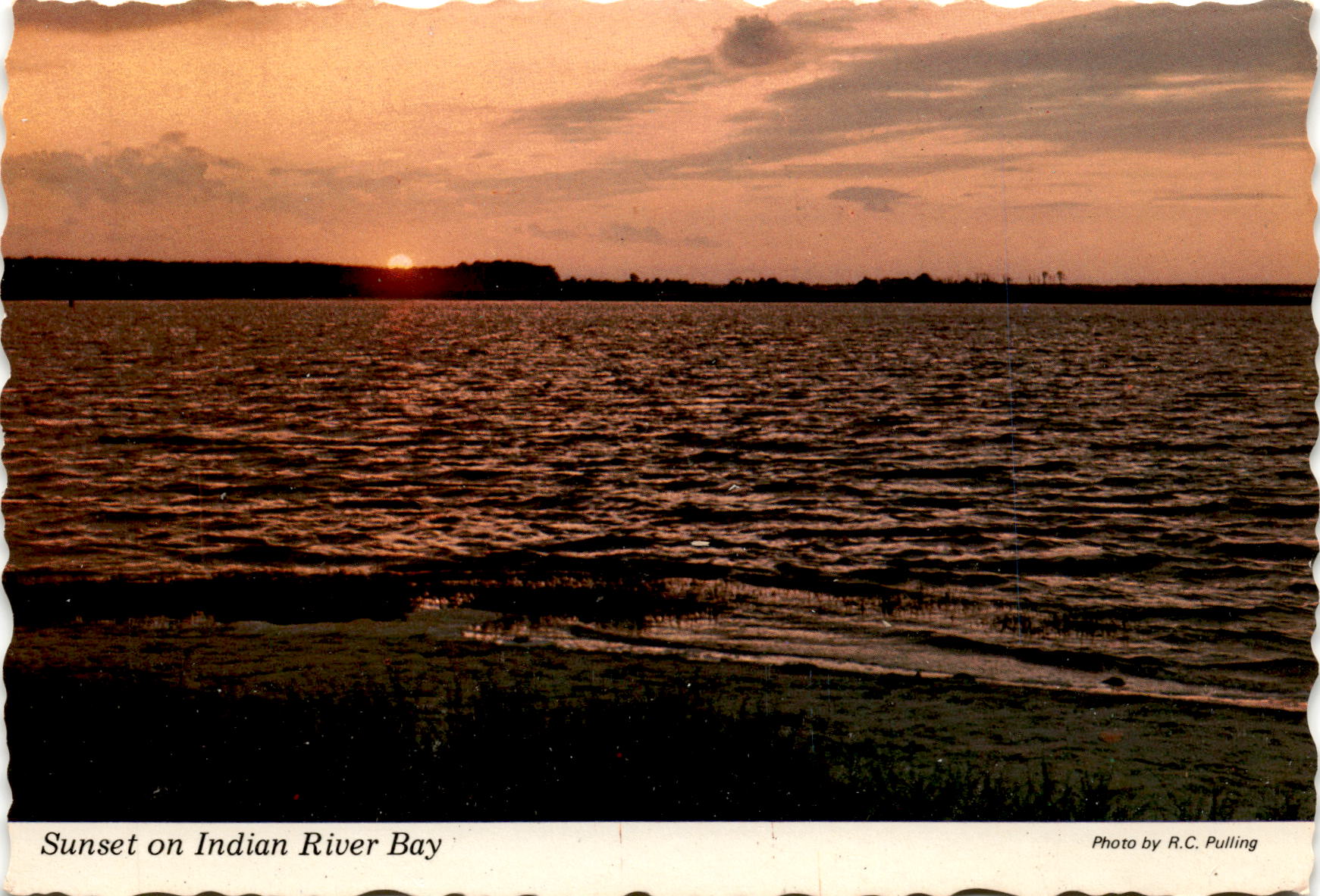 The postcard captures a stunning sunset on Indian River Bay, a popular destination known for clamming, sailing, and water skiing. The photo, taken by R.C. Pulling, perfectly showcases the beauty of the bay as the sun dips below the horizon at the end of a perfect day. The tranquil scene is sure to evoke a sense of peace and relaxation for anyone who receives this postcard.Published by HPS Inc. in Dover, Delaware, this postcard is a timeless reminder of the natural beauty found in the area. The back of the postcard features the classic layout of a vintage postcard, complete with space for an address and a message. The postcard is dated 1975, adding to its nostalgic charm and serving as a snapshot of a simpler time.Whether you’re a local resident or a visitor to Indian River Bay, this postcard serves as a keepsake to cherish and share with others. The image of the sunset on the bay is a reminder of the peaceful moments spent by the water, and a testament to the beauty of nature. As you hold this postcard in your hands, you can almost feel the gentle breeze and hear the sounds of the water, making it a truly special memento of a place worth remembering.