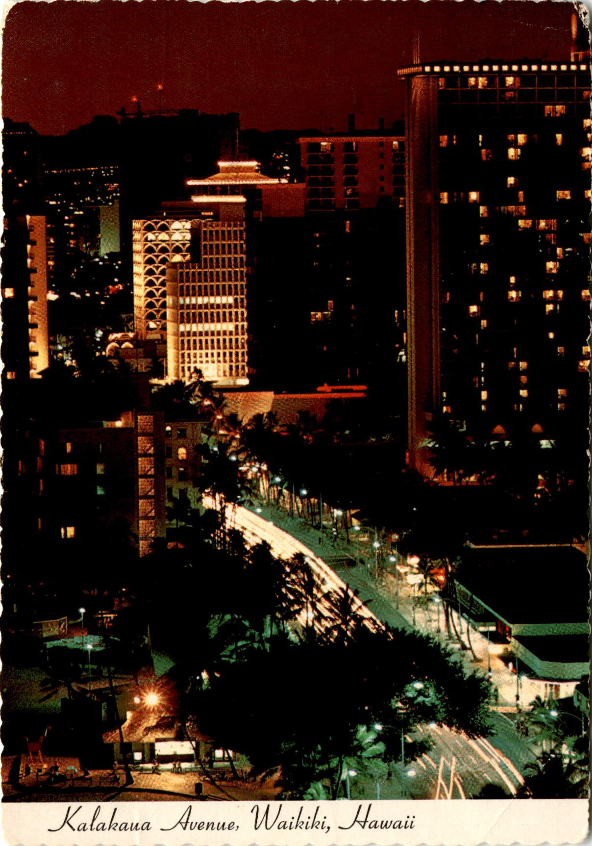 Back of PostcardI recently received a postcard from a friend who was visiting Kalakaua Avenue in Waikiki, Hawaii. The front of the postcard features a beautiful evening view looking from Diamond Head towards downtown Honolulu. The message on the back of the postcard expresses how much they enjoyed their time in Hawaii and how they wish they could stay longer.Kalakaua Avenue is known as the main street in Waikiki, Hawaii, and is a popular destination for tourists. The postcard captures the beauty of the area and the relaxed atmosphere that Hawaii is known for. The photograph on the postcard was taken by Don Dominick, showcasing the stunning views that can be found in Waikiki.The postcard was sent using a continental card by Hawaiian Service, Inc., and was postmarked in 1974. It was a reminder of a simpler time when postcards were a common way to stay in touch with loved ones while traveling. The message on the postcard serves as a memento of a wonderful trip to Hawaii and a desire to return to the beautiful island paradise.