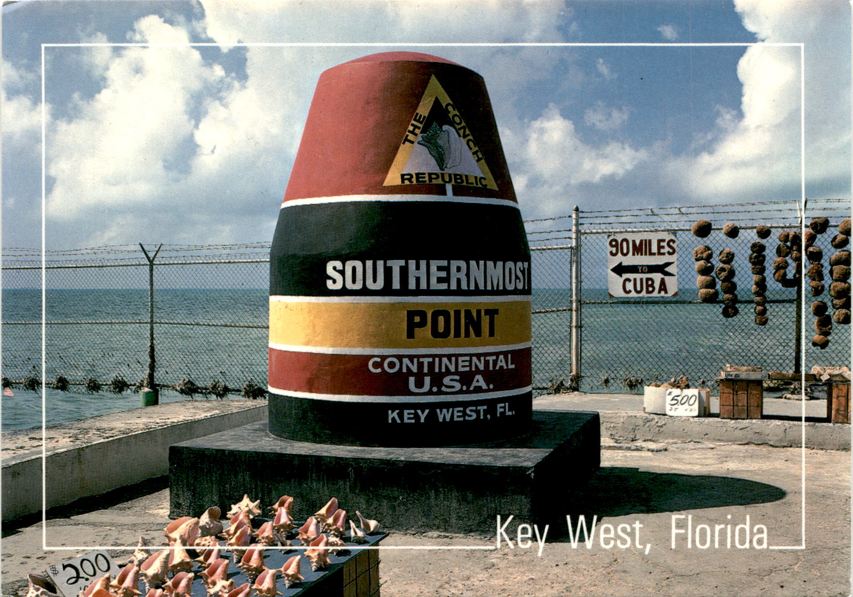 Key West, Florida is home to the southernmost point in the continental United States, a popular tourist destination where visitors can purchase shells or have their pictures taken at the iconic sign. The postcard features a vibrant image of the Conch Republic, with the clear blue waters of the Gulf Stream in the background. The text on the front of the postcard proudly proclaims Key West as part of the Sunshine State of Florida.On the back of the postcard, there is a brief description of Key West as the southernmost point in the continental U.S.A., located just 90 miles from Cuba. The postcard is a reminder of the unique location and charm of Key West, with its rich history and beautiful scenery. The photo on the postcard is credited to D. Noble of John Hinde Curteich Inc., known for their high-quality natural color reproductions.Overall, the postcard serves as a memento of a visit to Key West, capturing the essence of the Conch Republic and its connection to the Gulf Stream. Whether sent to friends and family or kept as a keepsake, the postcard is a reminder of the beauty and allure of Key West, Florida. With its vibrant colors and picturesque scenery, the postcard is a perfect representation of the southernmost point in the continental United States.